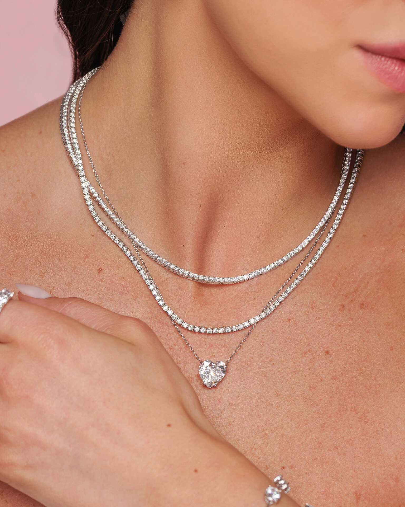 Colar Coração Clarice em Prata 925,com uma deslumbrante Zircônia cristal lapidada em formato de coração. A pedra central brilha com intensidade e pureza, fixada por garras discretas que valorizam sua forma romântica e elegante. A composição é minimalista, sofisticada e atemporal — perfeita para quem aprecia joias com significado e brilho sutil. Possui fecho Lagosta.