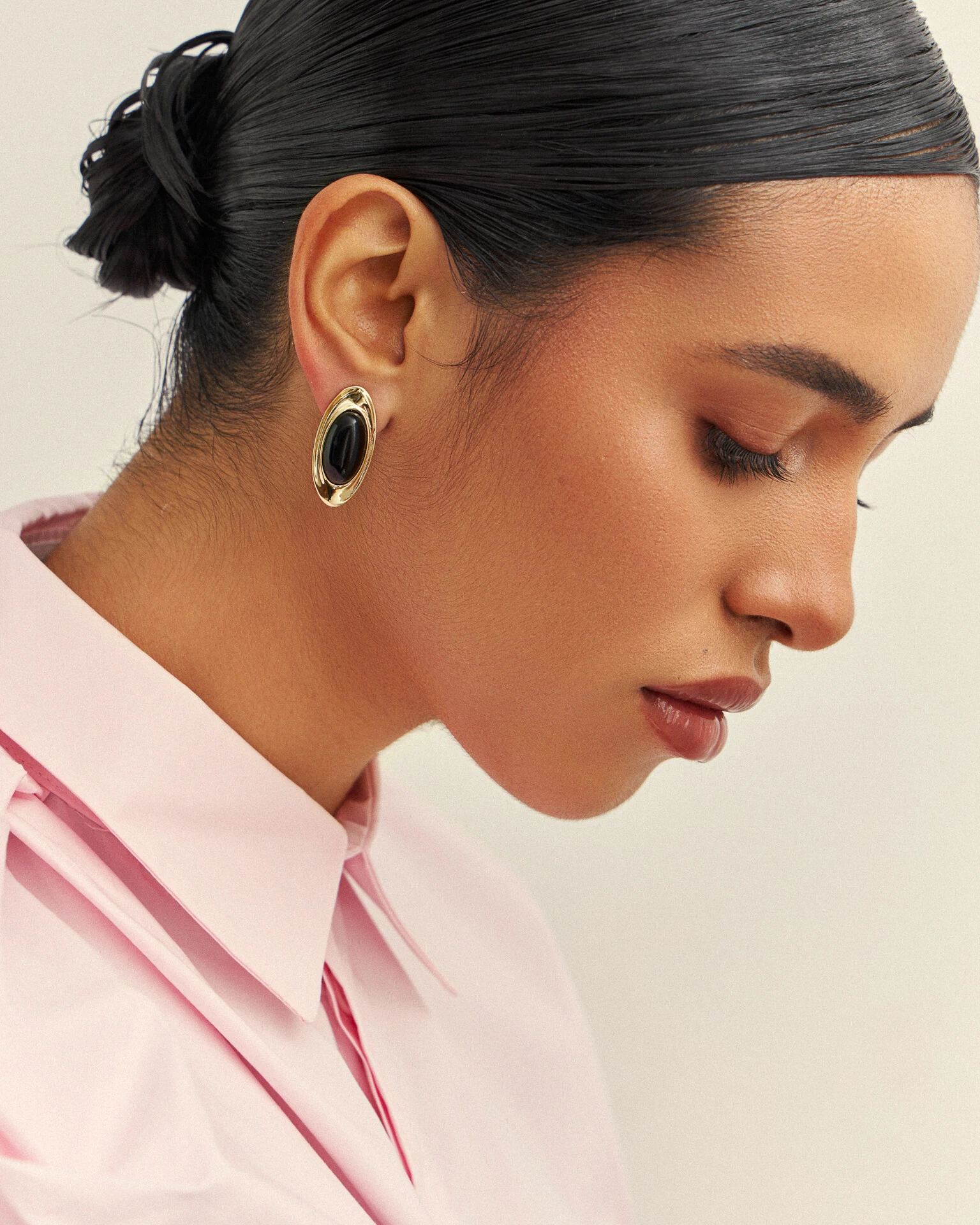 Brinco Ônix Eclipse tem sua base oval em banho de ouro 18k traz um brilho quente e sofisticado, enquanto a pedra ônix central, polida em alto brilho, revela um negro profundo e enigmático. Historicamente, o ônix é celebrado por suas propriedades protetoras e estabilizadoras, atuando como um escudo contra energias negativas e promovendo equilíbrio emocional. Este brinco não apenas enriquece sua coleção com elegância atemporal, mas também serve como um amuleto de força e serenidade, ideal para quem busca aliar estilo e simbolismo em uma única peça.