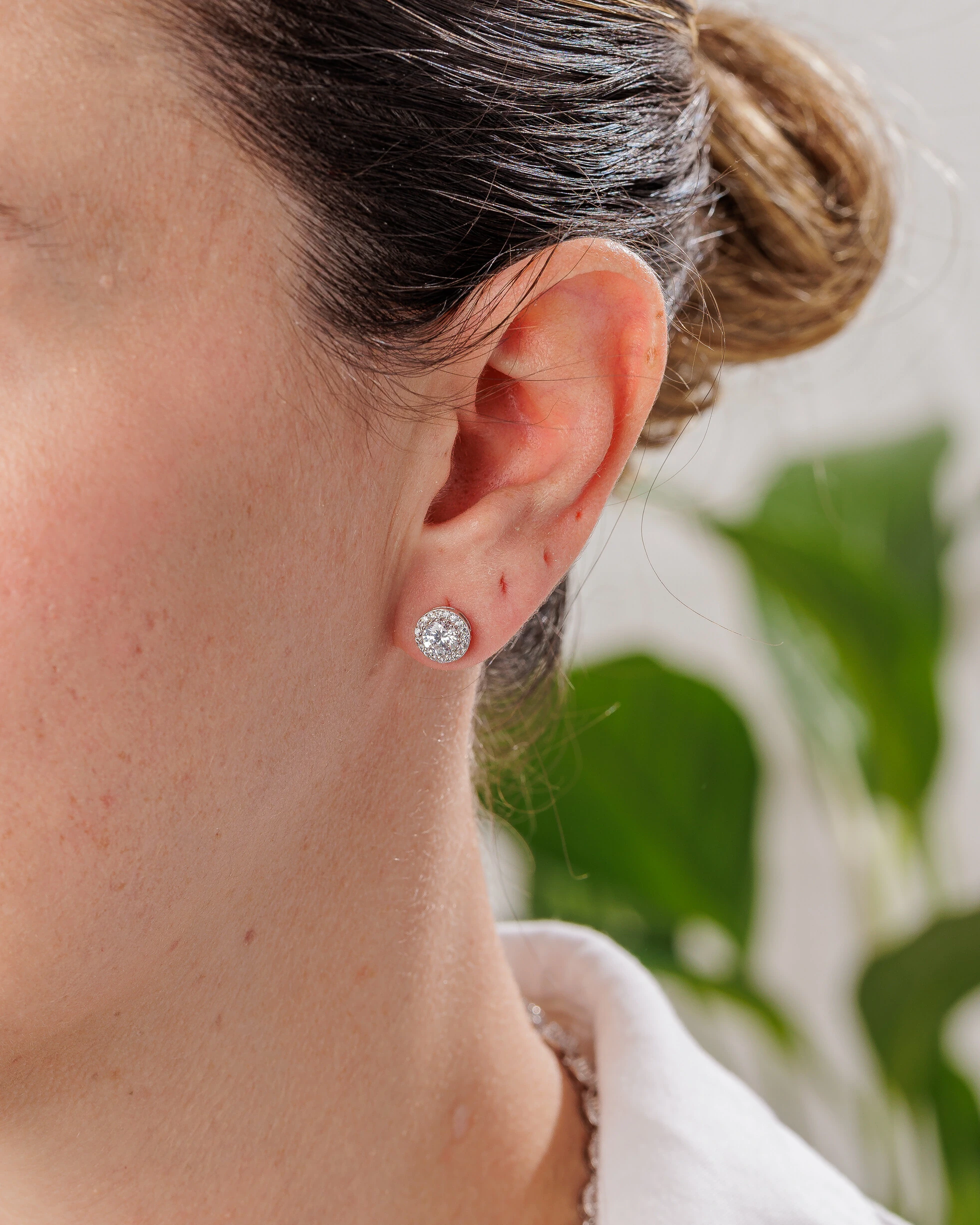 O brilho irresistível que desprende do surpreendente Brinco Isa, em banho de ródio branco, um modelo delicado de Solitário com ponto de luz e moldura de zircônias cristais. Combine-o com outros acessórios da Linha Isa.