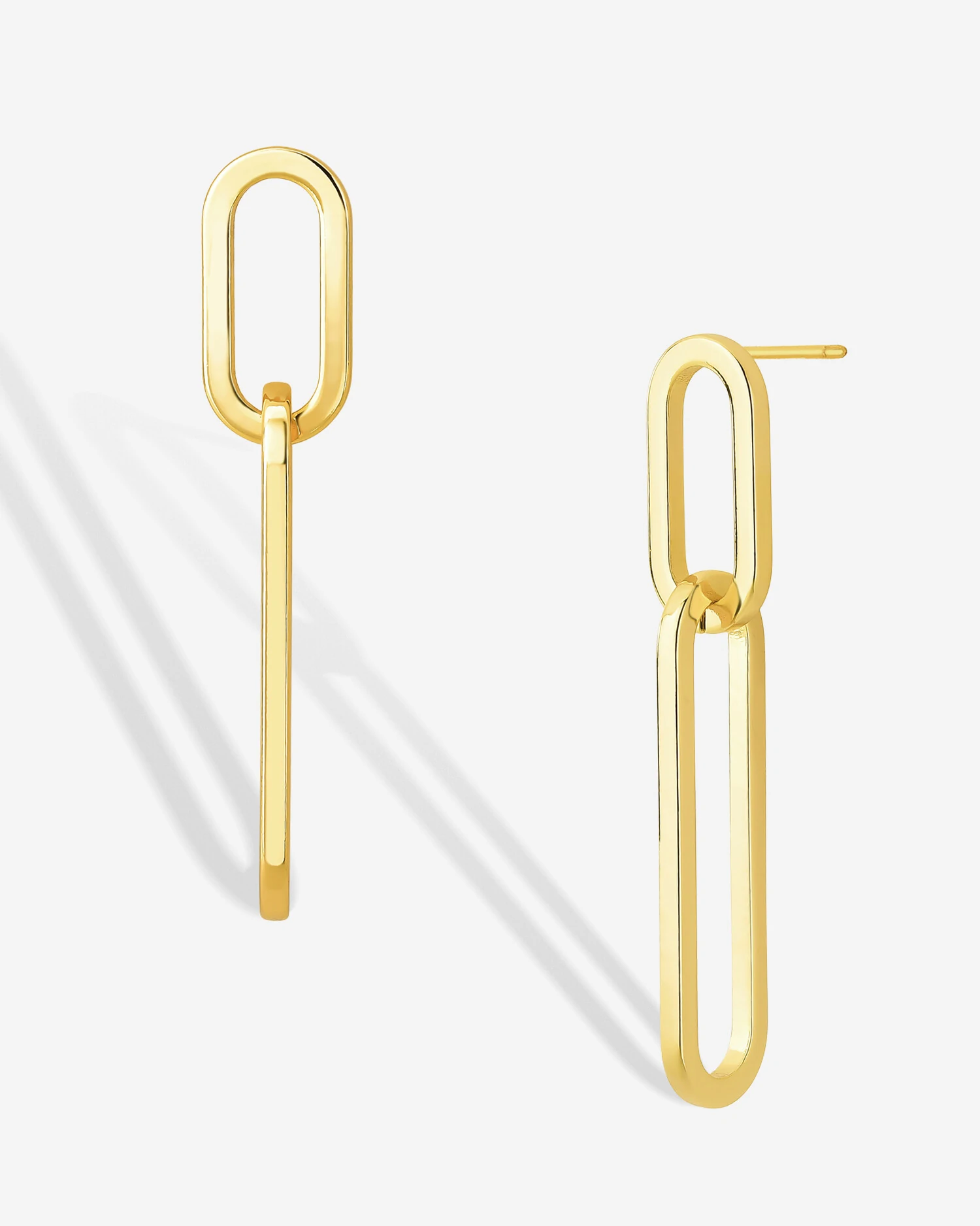 O Brinco Isadora, em banho de Ouro 18k, traz elos alongados e geométricos que criam um efeito moderno e elegante. Uma peça versátil, ideal para compor produções sofisticadas com toque de ousadia minimalista.
