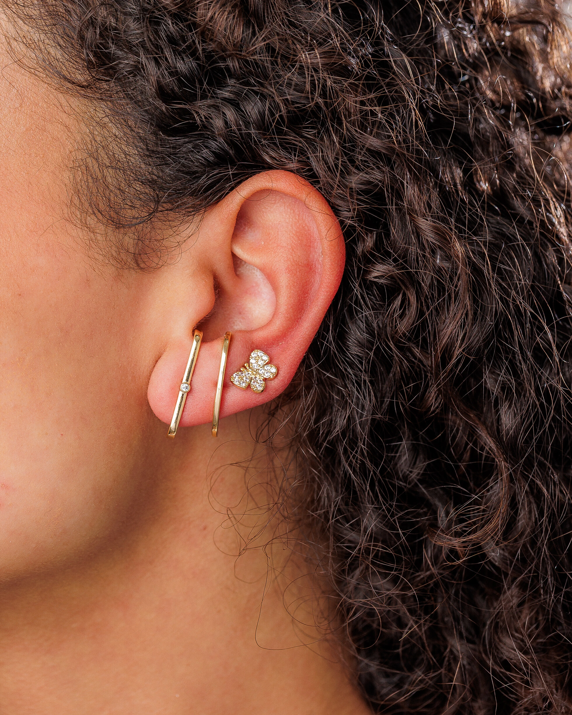 Delicado e feminino, o brinco Borboleta Encanto é confeccionado em banho ouro 18k e traz o formato gracioso de uma borboleta cravejada por zircônias brilhantes. Seu design transmite leveza e sofisticação, tornando-o a escolha perfeita para iluminar o visual no dia a dia ou em ocasiões especiais. Um acessório que simboliza transformação, beleza e liberdade, ideal para quem gosta de detalhes sutis, mas cheios de significado.