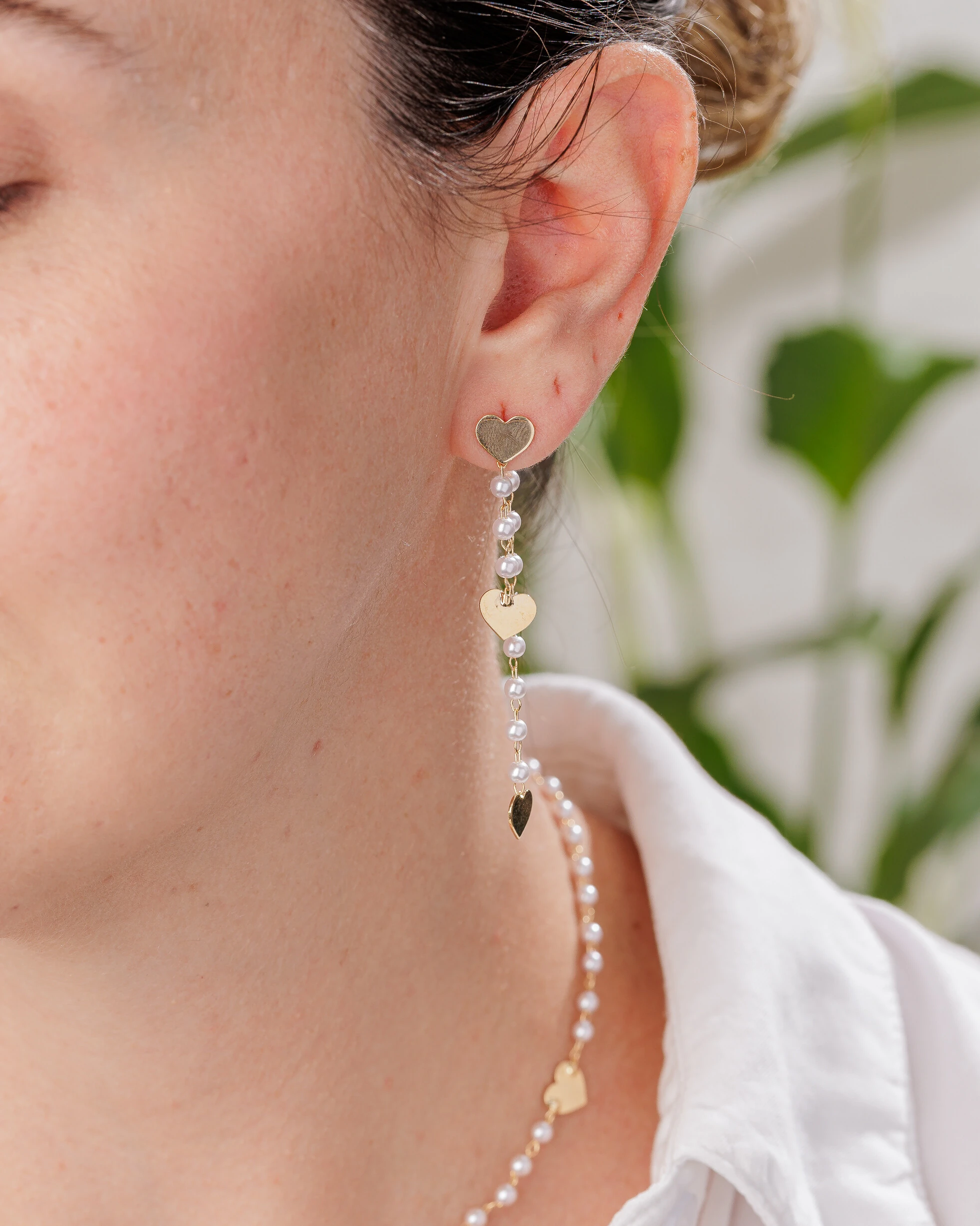 Um brinco delicado e romântico, perfeito para quem ama detalhes que transmitem feminilidade e sofisticação. Em banho de Ouro 18k, ele combina pequenas pérolas shell intercaladas com pingentes de coração, criando um caimento elegante e cheio de charme.O design alongado traz movimento e leveza, ideal para iluminar o visual em ocasiões especiais ou no dia a dia com um toque refinado.