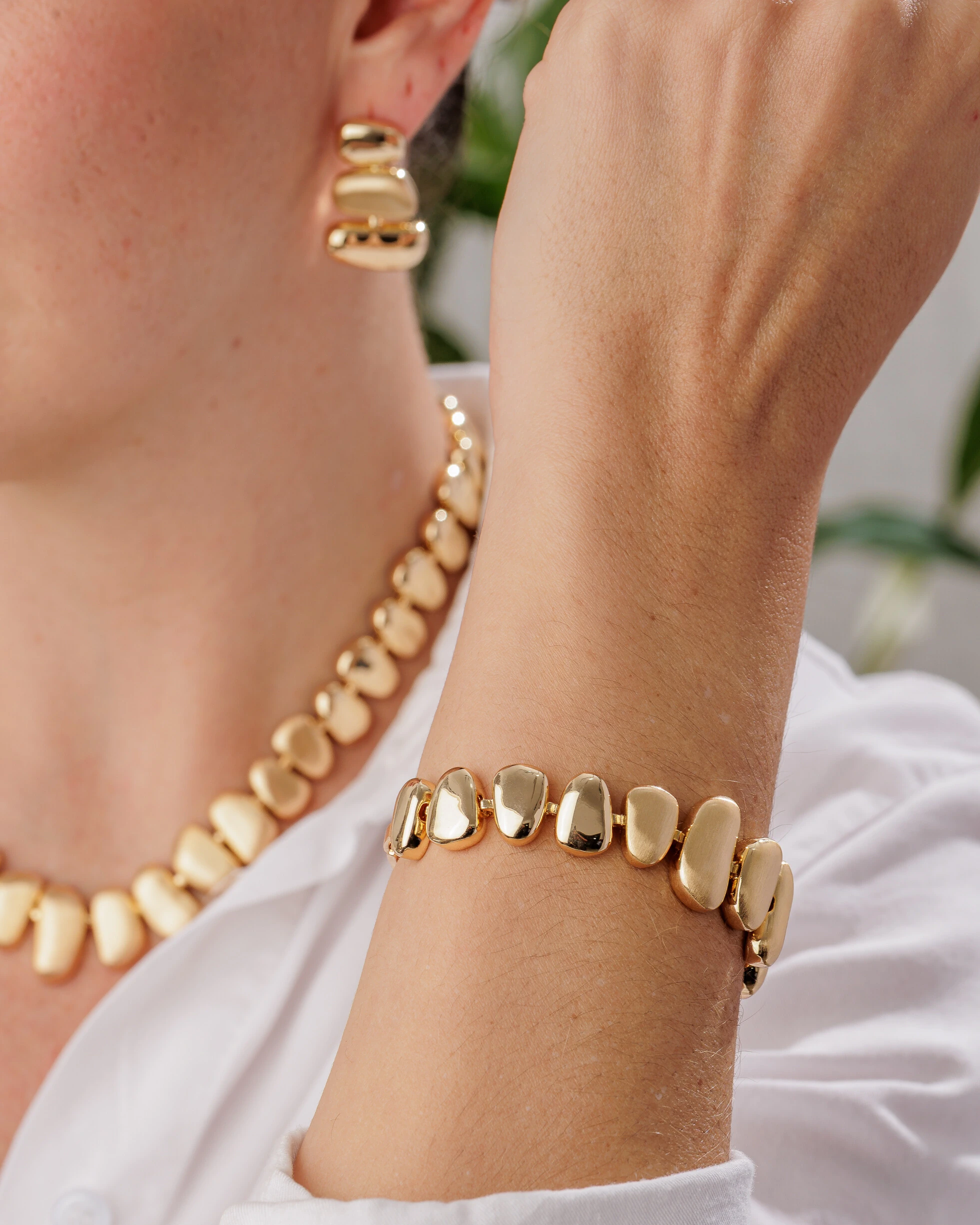 Imponente e sofisticado, o Brinco Chiara é uma peça de destaque. Com design orgânico e acabamento impecável é o acessório perfeito para quem quer personalidade e elegância. Banho de ouro 18k com acabamento acetinado.