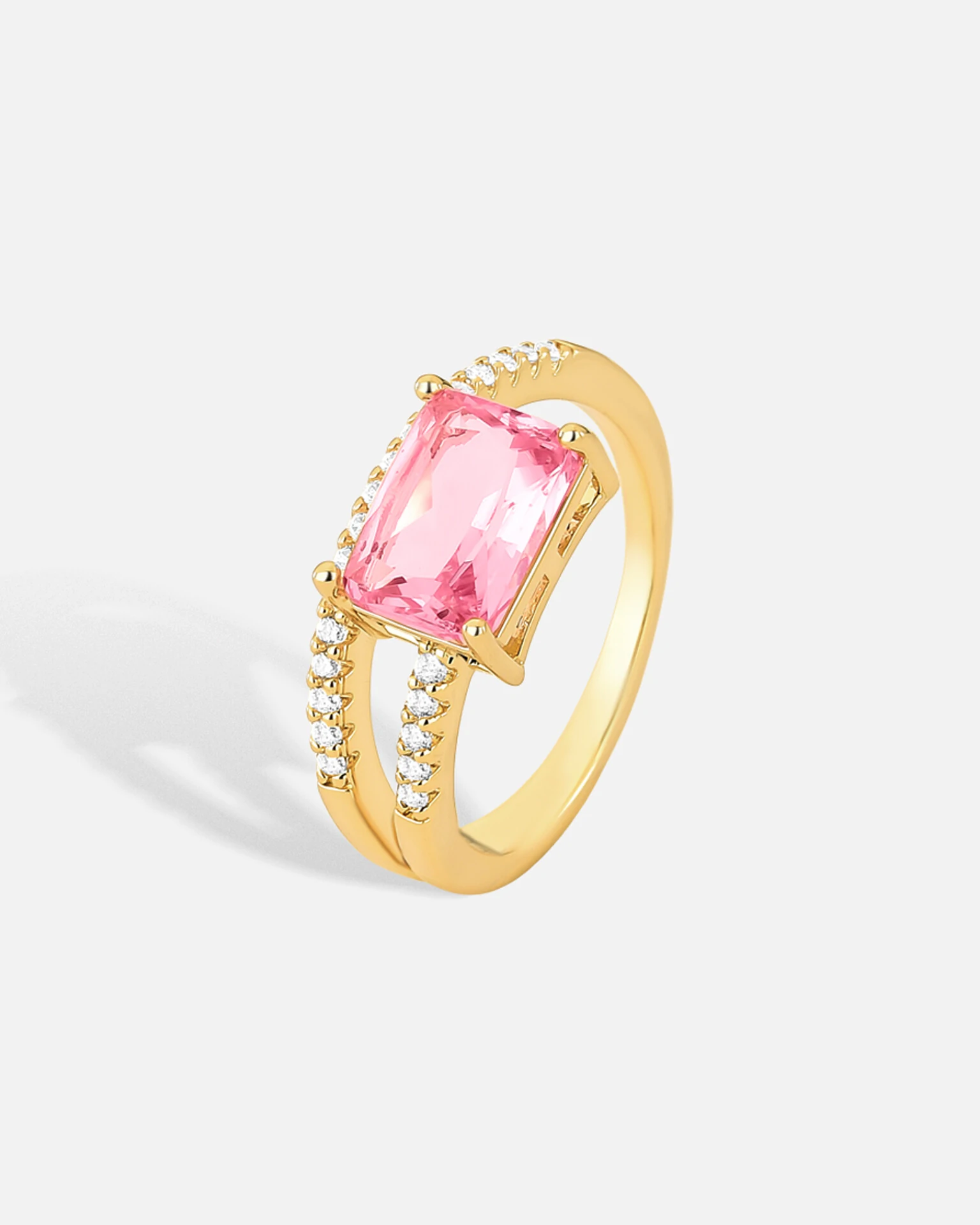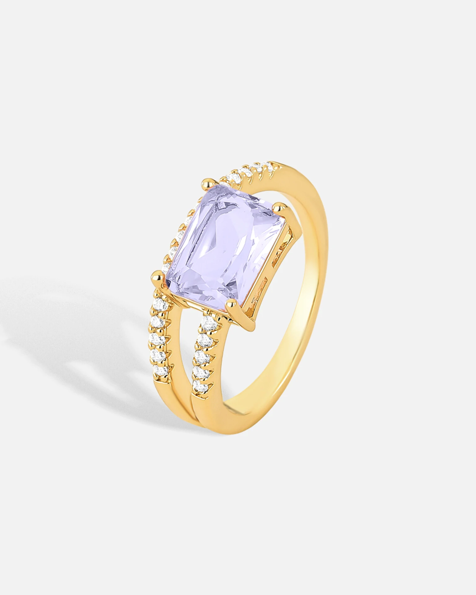 O aro bifurcado do elegante Anel Serenata, exibe o equilíbrio suave da harmoniosa composição de zircônias que se apresentam em diferentes tons e lapidações, resultando em um acessório leve e repleto de charme. Em banho de ouro 18k.