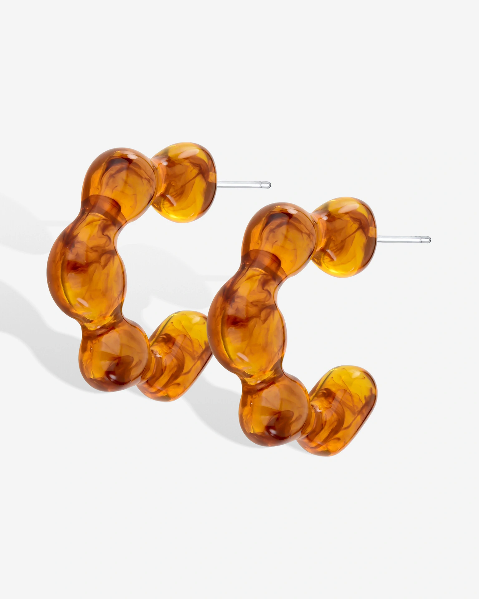 O poder mágico da natureza e sua força transformadora, são fonte de inspiração para o Brinco Meia Argola Âmbar, um modelo orgânico de formas esculturais, com surpreendentes nuances de tons laranja avermelhados em uma explosão vivaz de energia e beleza, proporcionando sofisticação ao acessório.
