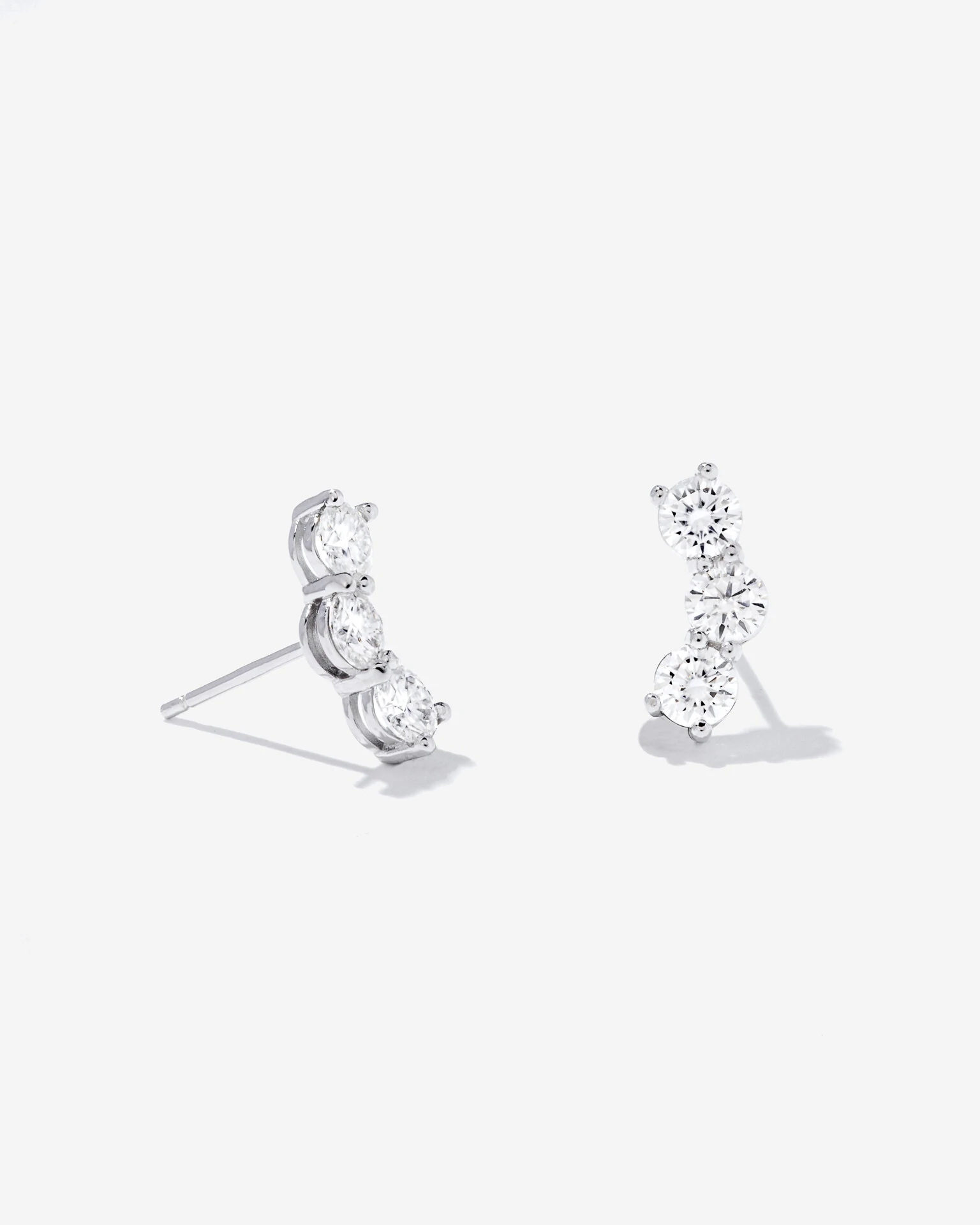 Uma joia singular em prata 925 com banho de ródio branco, modelo clássico de Ear Cuff, apresentando uma delicada estrutura envolvida pela elegância de Moissanites 4 mm na lapidação Brilhante, que fascinam com seu brilho intenso e refinado.