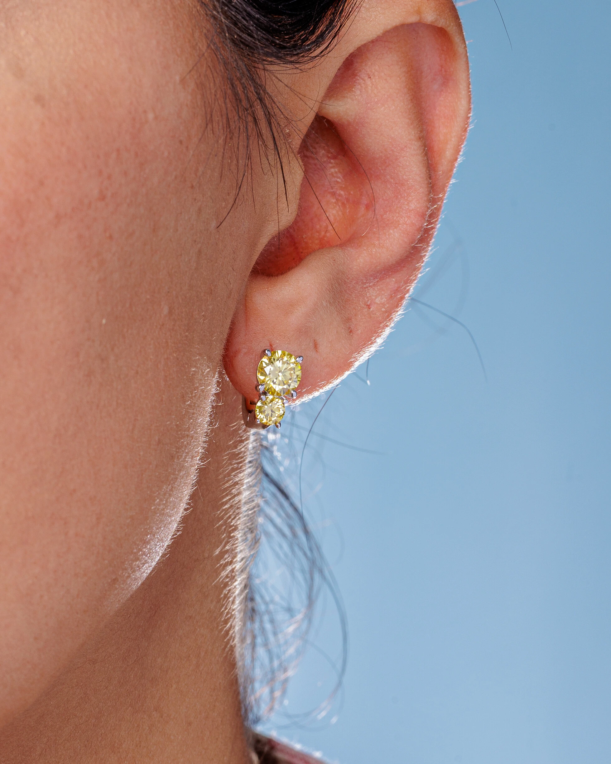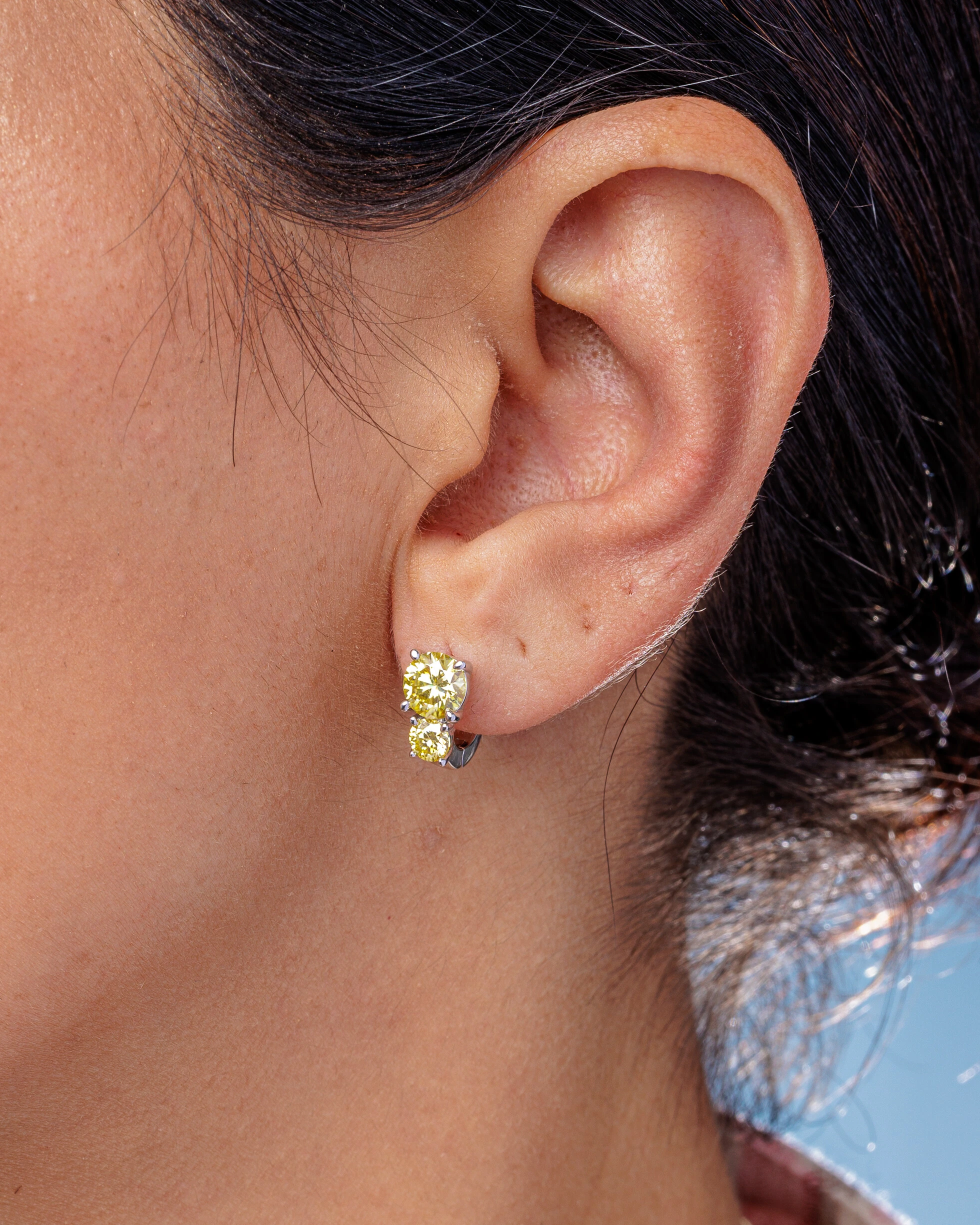 Os envolventes reflexos de pontos de luz em Moissanites, recobrem a delicada argolinha com suas nuances refinadas, valorizando a beleza desta joia atemporal, confeccionada em prata 925 com banho de ródio branco.