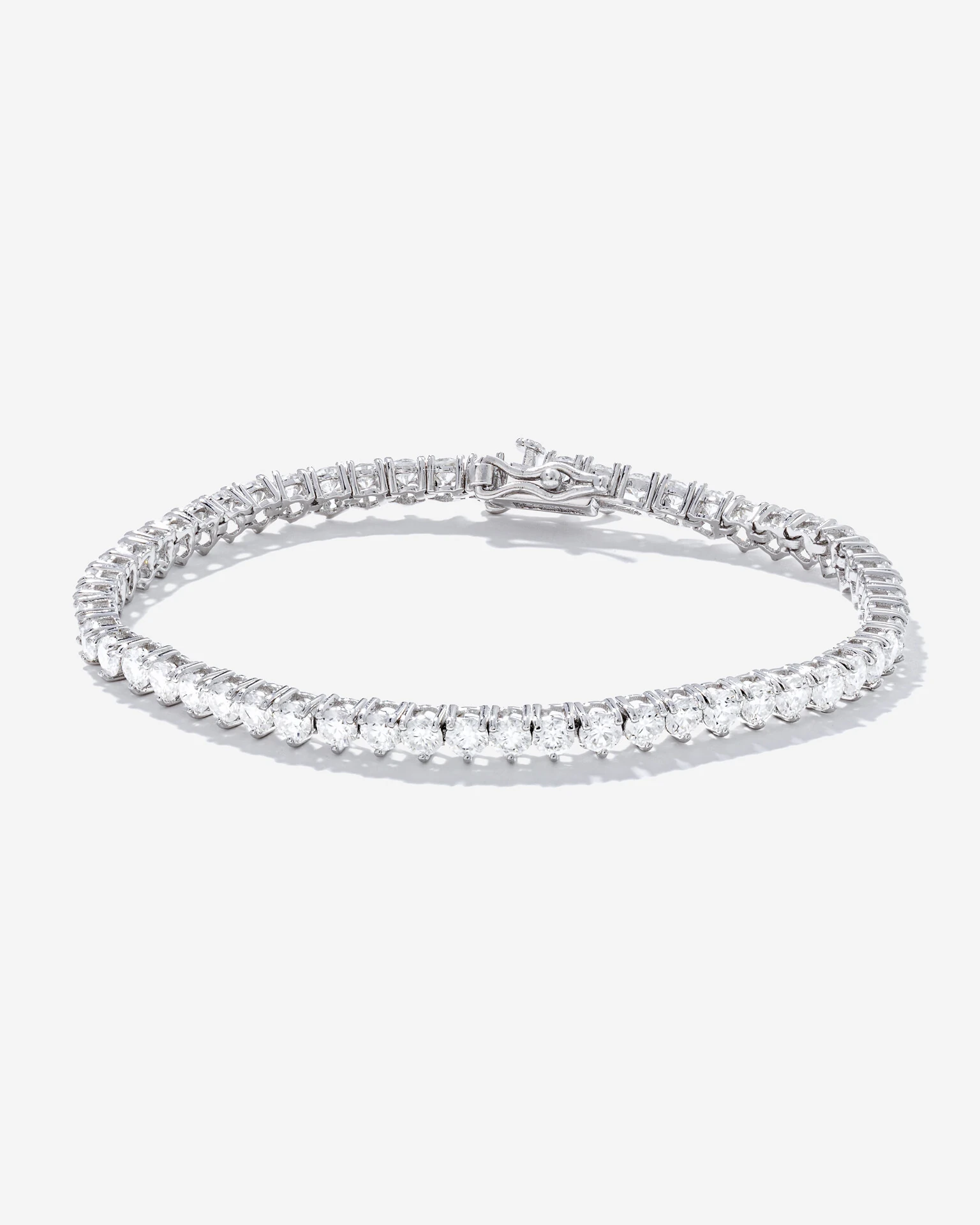 A clássica Pulseira Riviera de 17 cm, confeccionada em prata 925 com banho de ródio branco, exibe a elegância sofisticada de Moissanites 3 mm, com uma profusão maravilhosa de reflexos que a transformam em uma joia irresistível. Possui fecho gaveta e trava de segurança.
