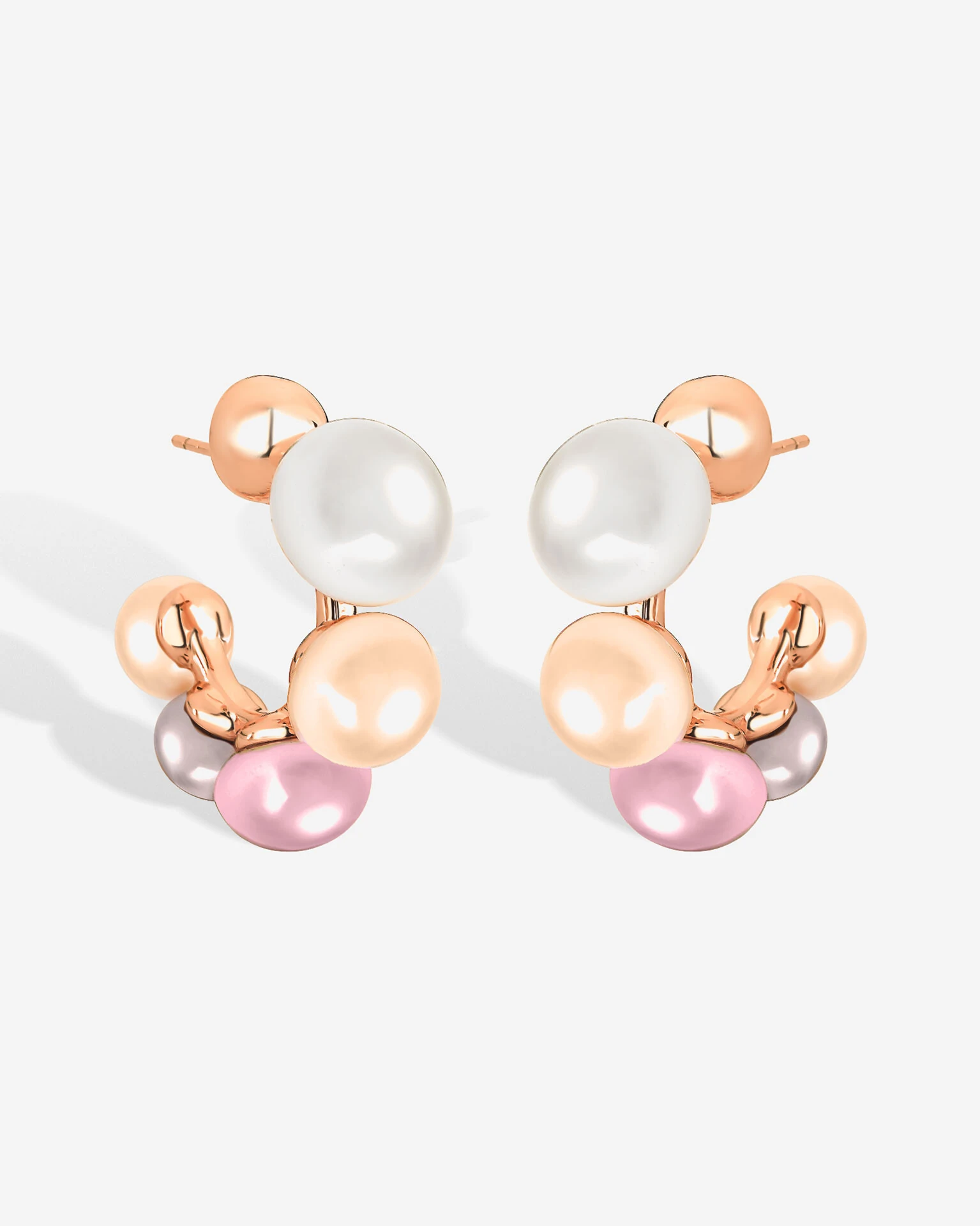 Brinco Argola Rose, formado por pérolas shell em tons de branco, beje e rosa e com o banho de Ouro Rosé