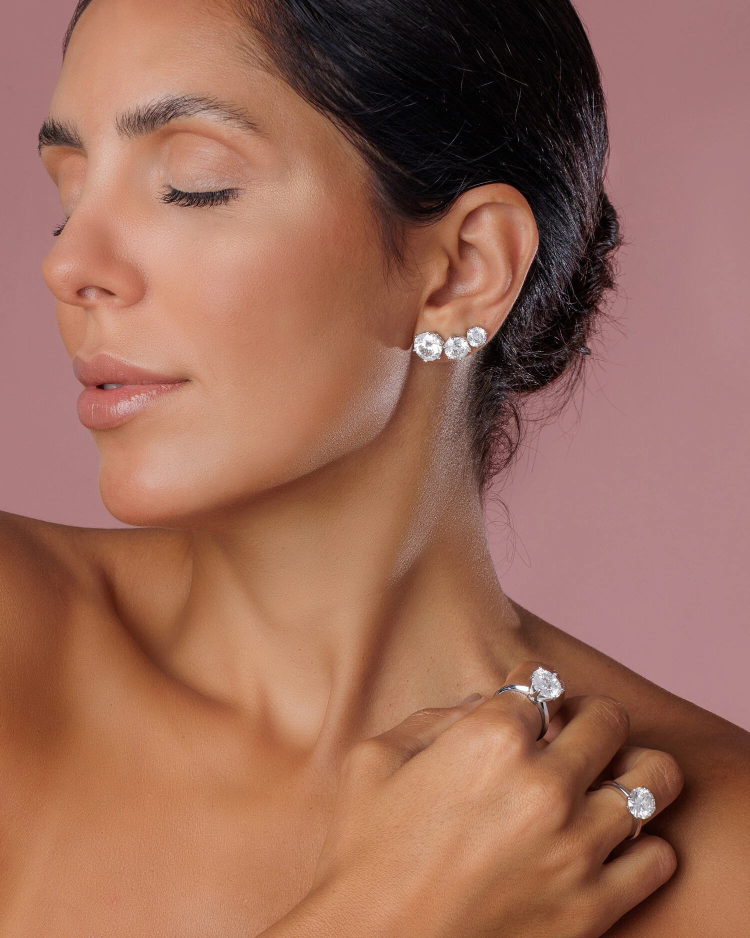 A elegância atemporal deste modelo de brinco, surpreende com o design que une diversas facetas em uma pedra Moissanite 11mm, em lapidação portuguesa cujos reflexos amarelados e um brilho excepcional, intensificam a beleza desta encantadora joia confeccionada em prata 925 e banho de ródio branco.