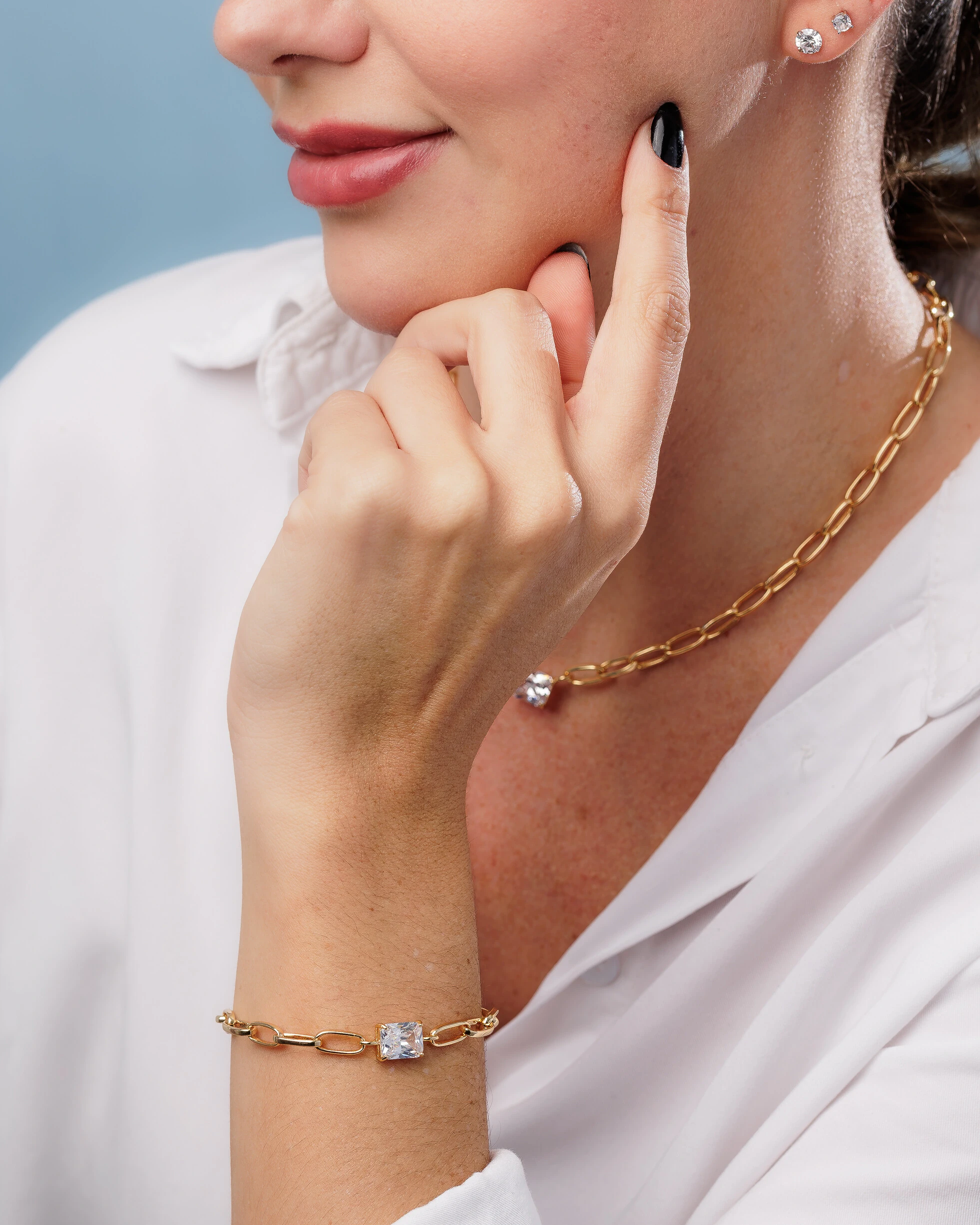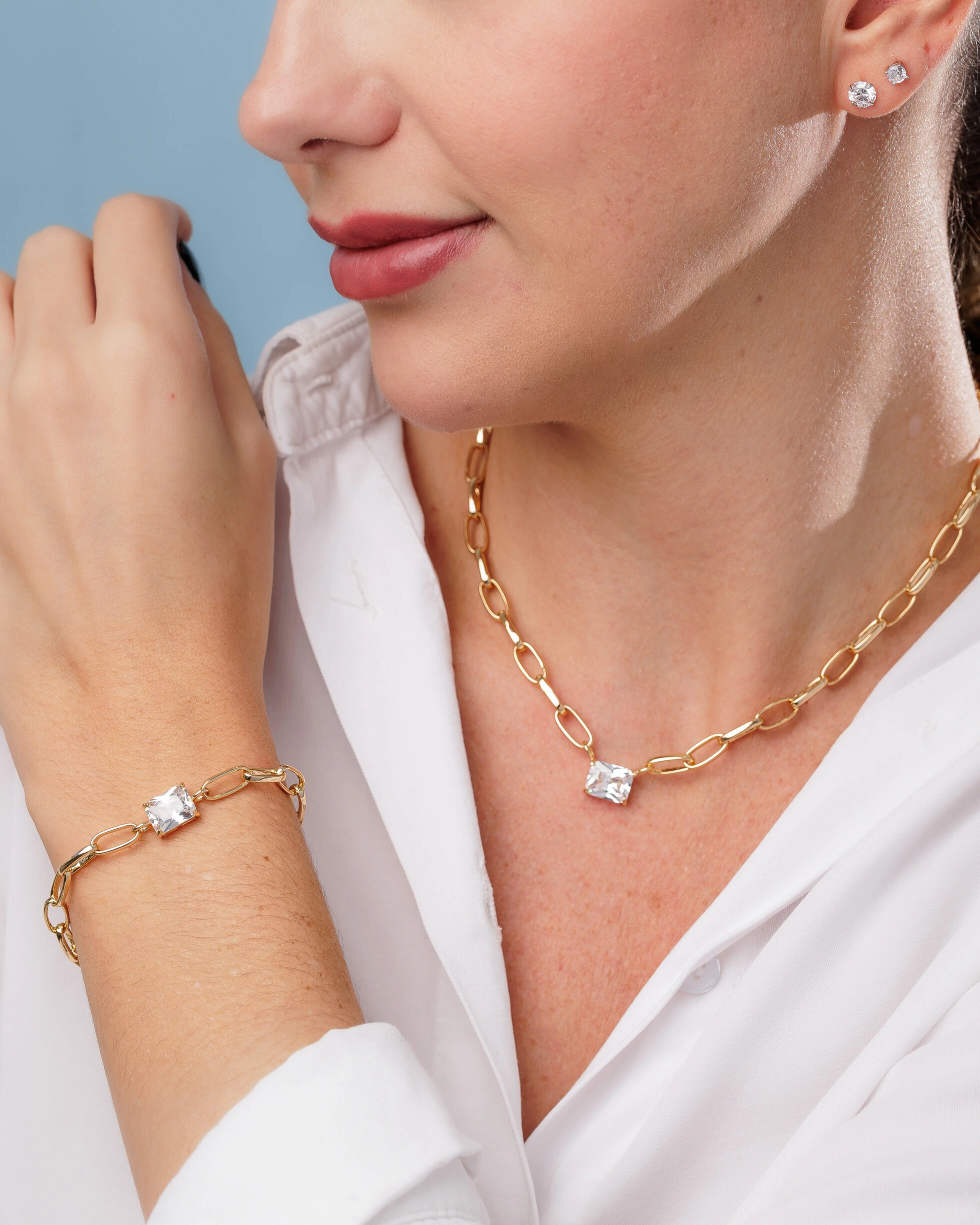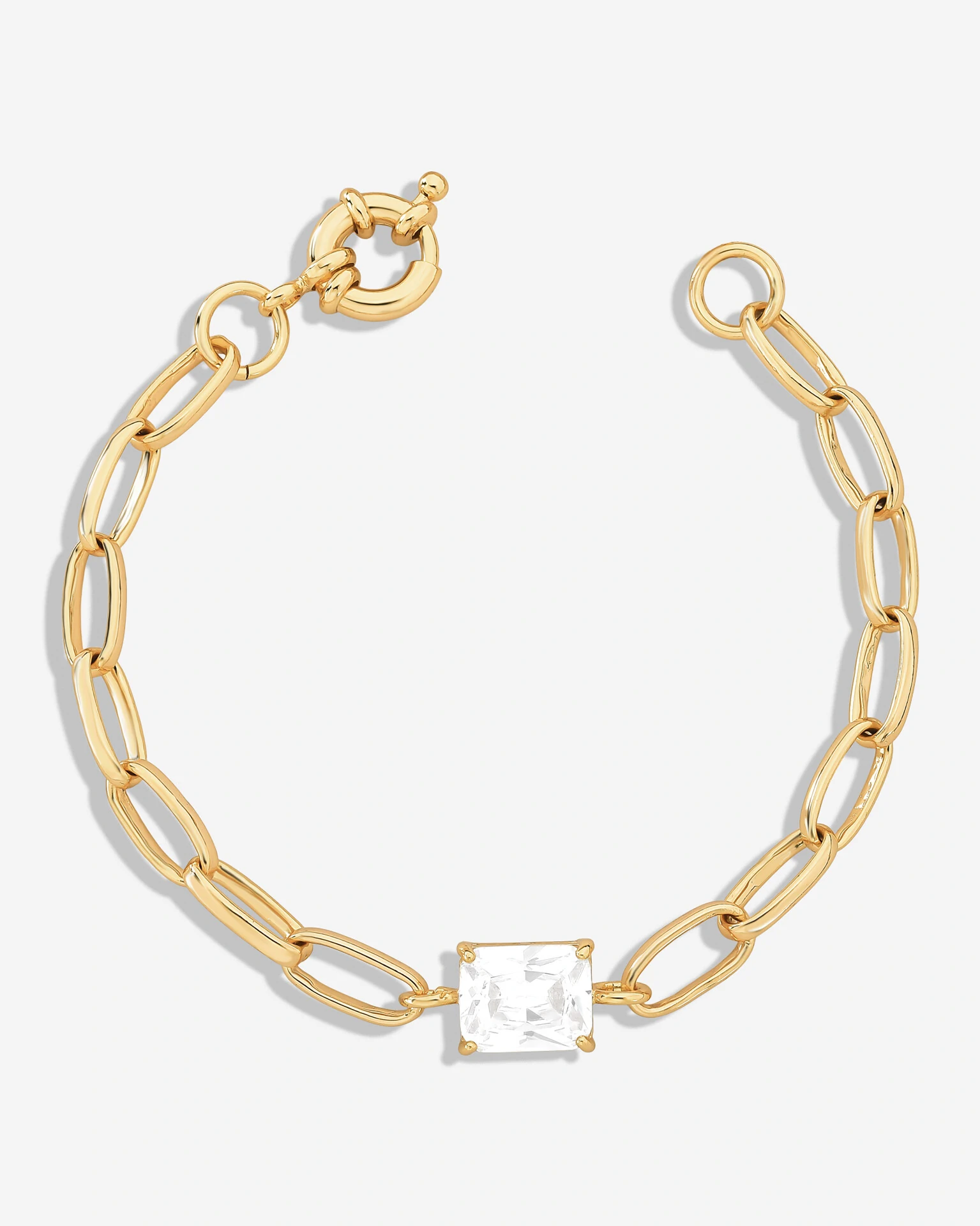 Dois clássicos juntos, os elos em banho ouro 18k e uma pedra em zircônia centralizada. Ideal para dar um brilho discreto no seu dia a dia.