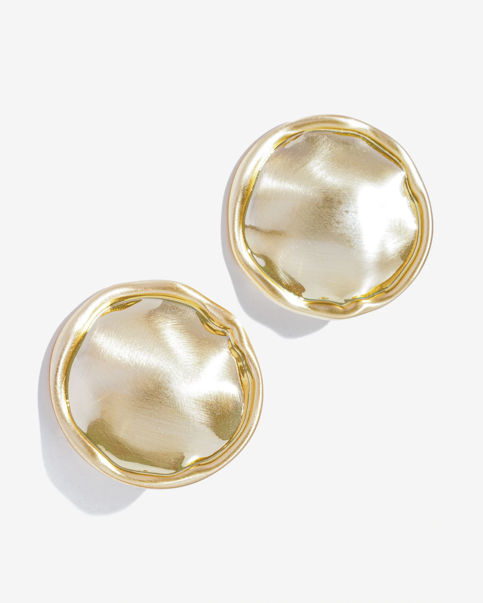 O efeito medalha da um ar de modernidade nesse brinco, vindo em banho ouro 18k e ródio.