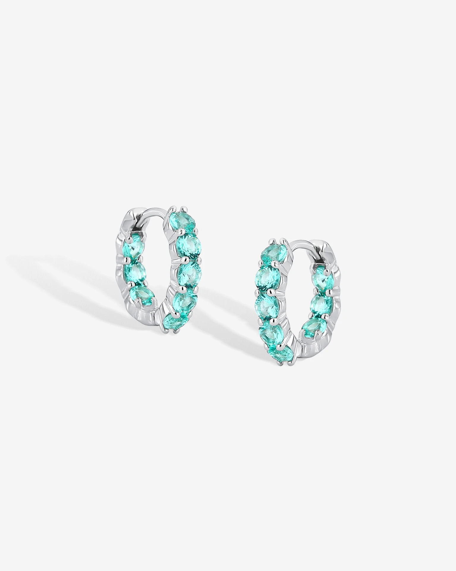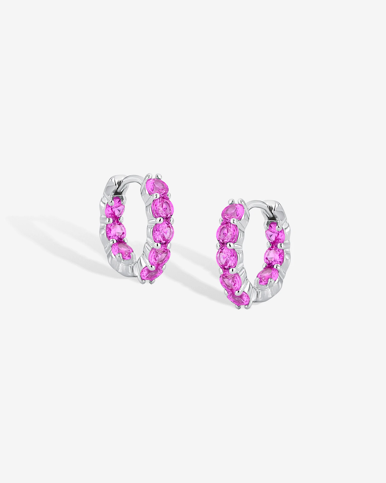 Um clássico, brinco em ródio argola cravejada em diversas cores, ideal para quem quer um brilho discreto no seu dia a dia.