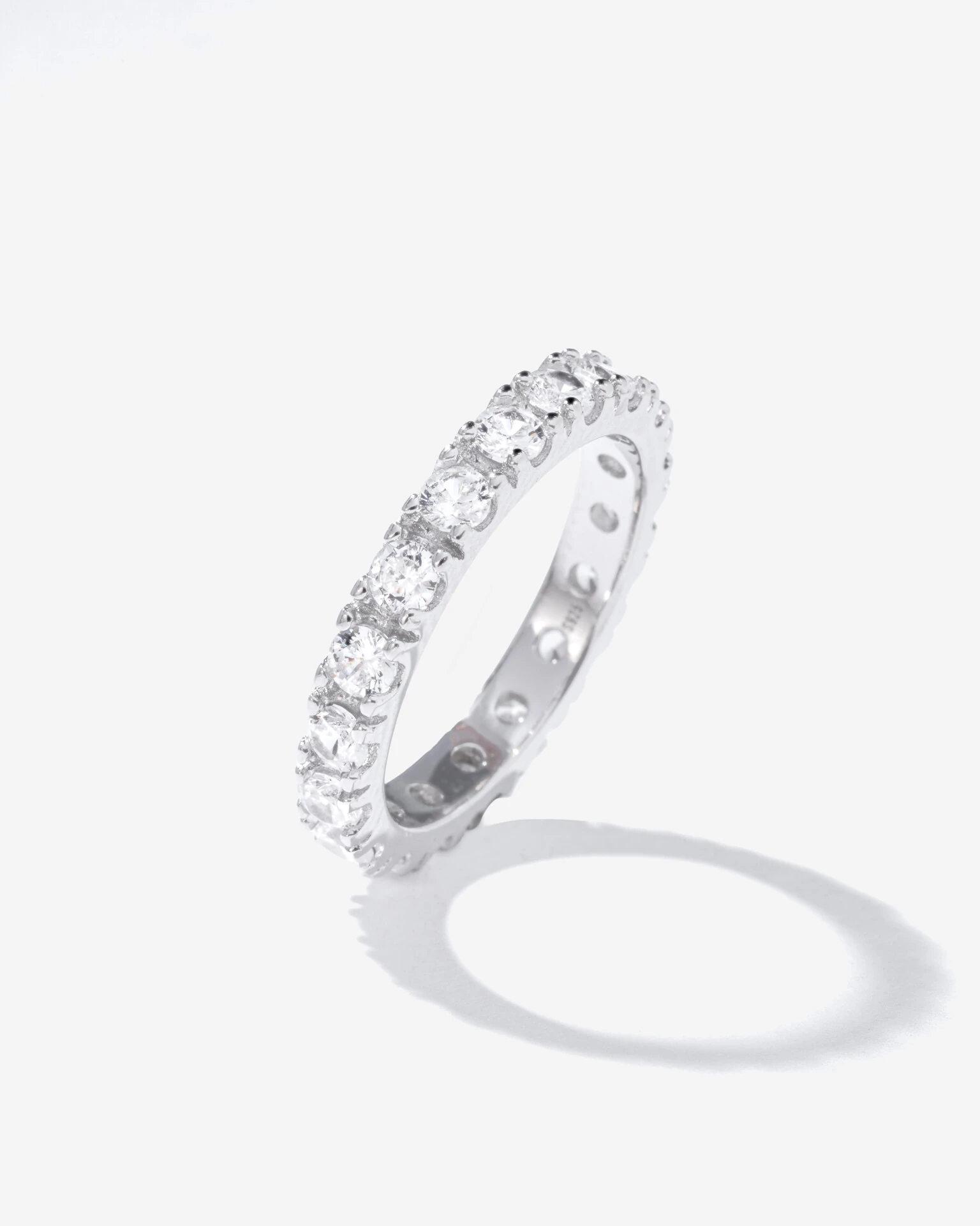 Anel Cecile, uma bela joia em prata 925 e banho de ródio branco, seu delicado aro fino destaca a elegante composição em Zircônias cristais, que envolvem de refinamento o clássico modelo de Aparador.