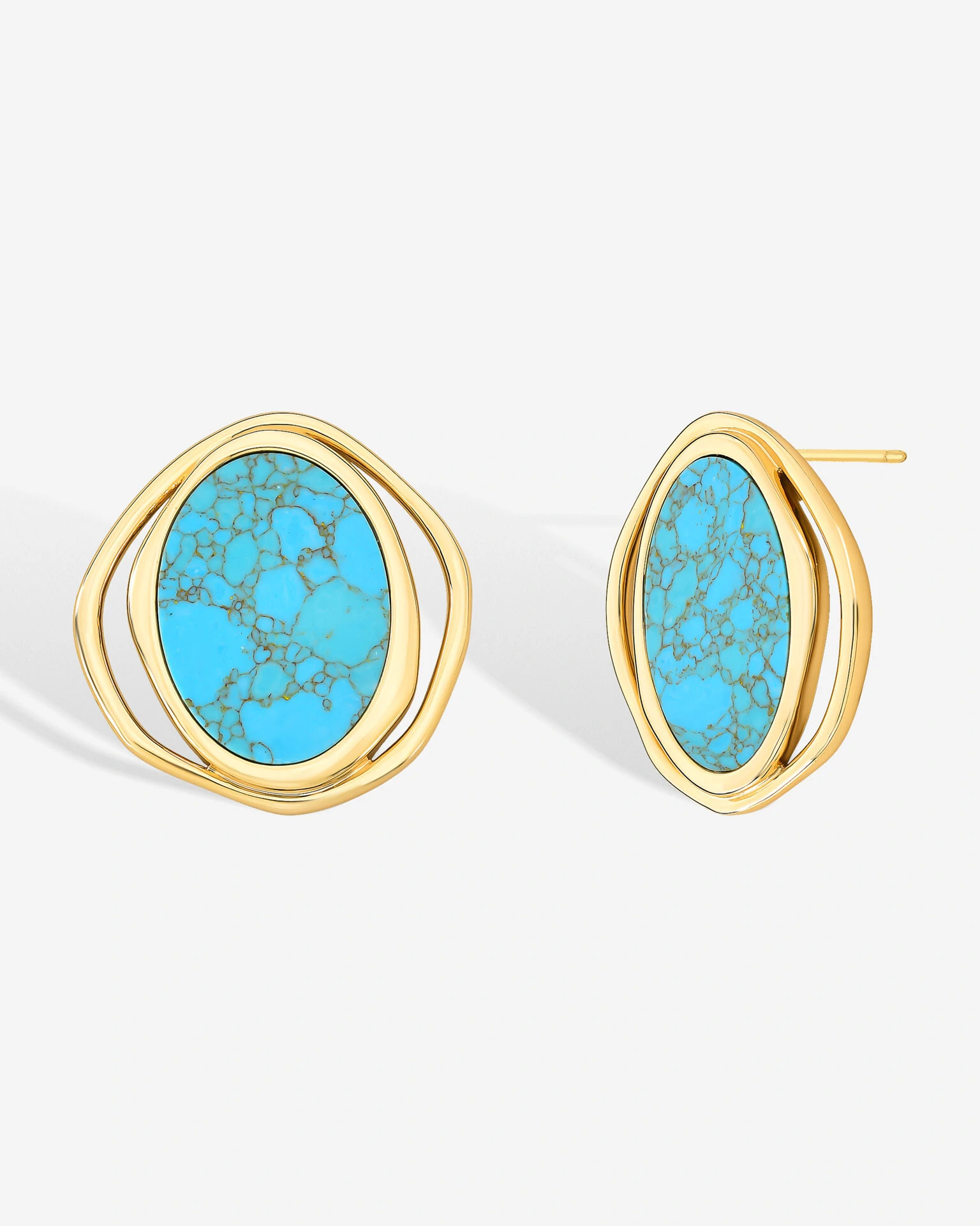 Design elegante que realça a beleza da turquesa com moldura oval em banho de Ouro 18k, equilibra sofisticação e modernidade.
