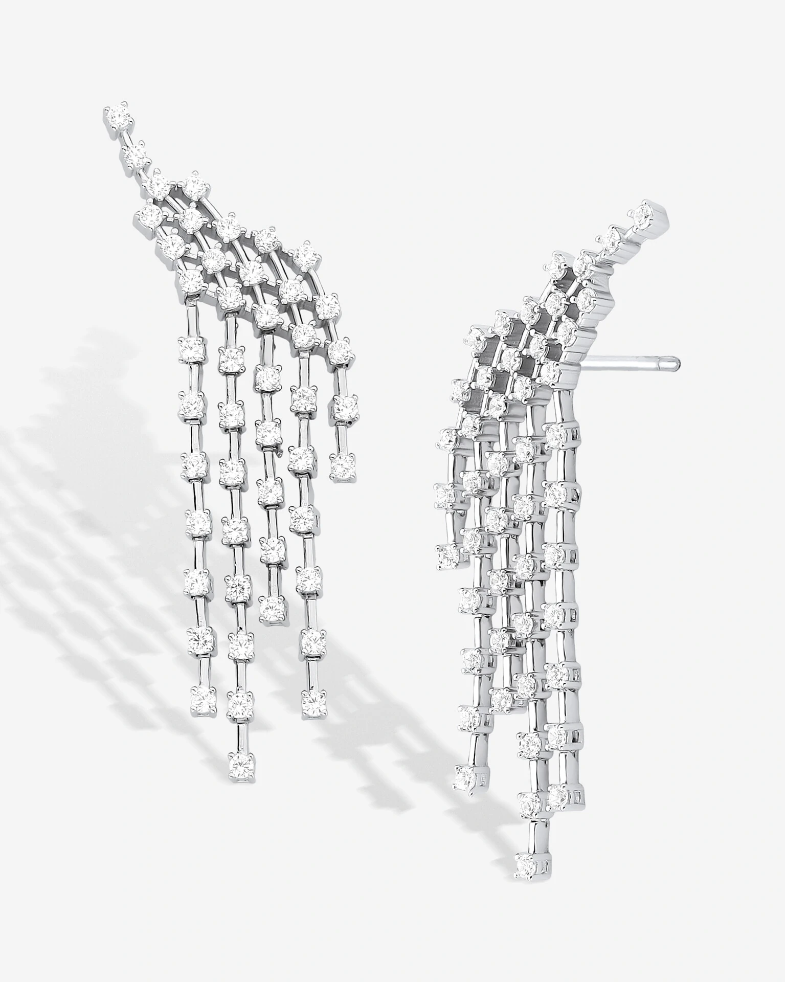 O Brinco Ear Cuff Lia, em banho de Ródio Branco, tem design fluido dando movimento com fileiras de microzircônias, para dar brilho em qualquer look.