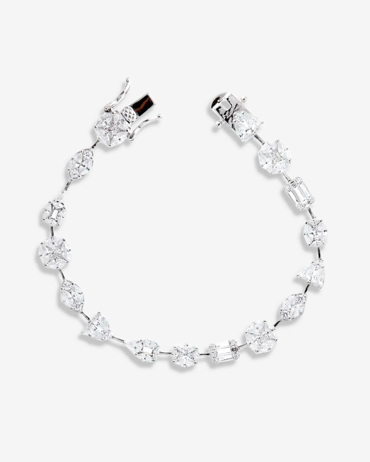 A refinada estrutura da Pulseira Riviera Luisa, apresenta corrente fio faca com haste lisa e contínua, e uma composição alternada de zircônias cristais em diferentes lapidações. Joia em prata 925 com banho de Ródio branco. Um modelo repleto de brilhos, especialmente pensado para os momentos que exigem um look sutilmente elegante.