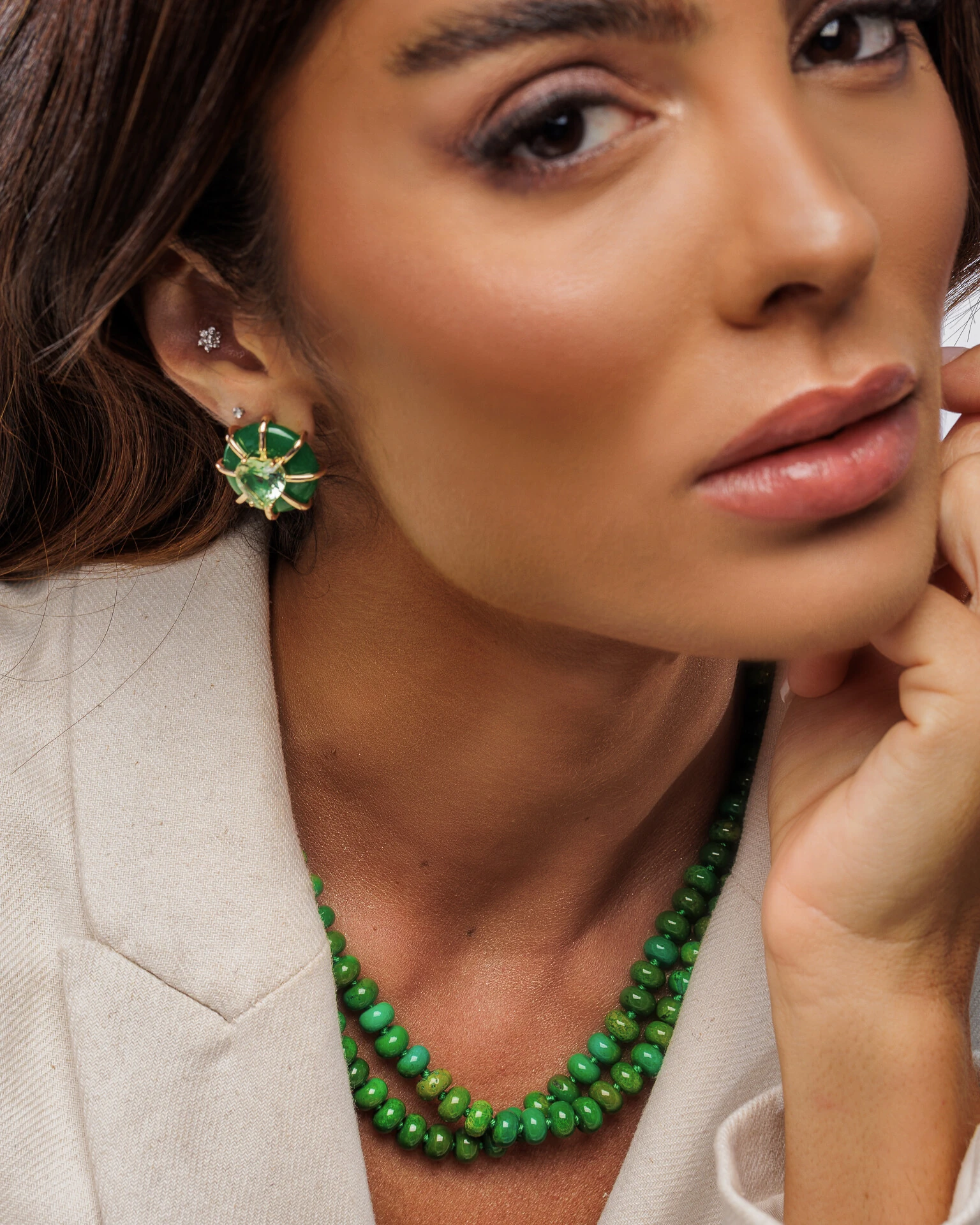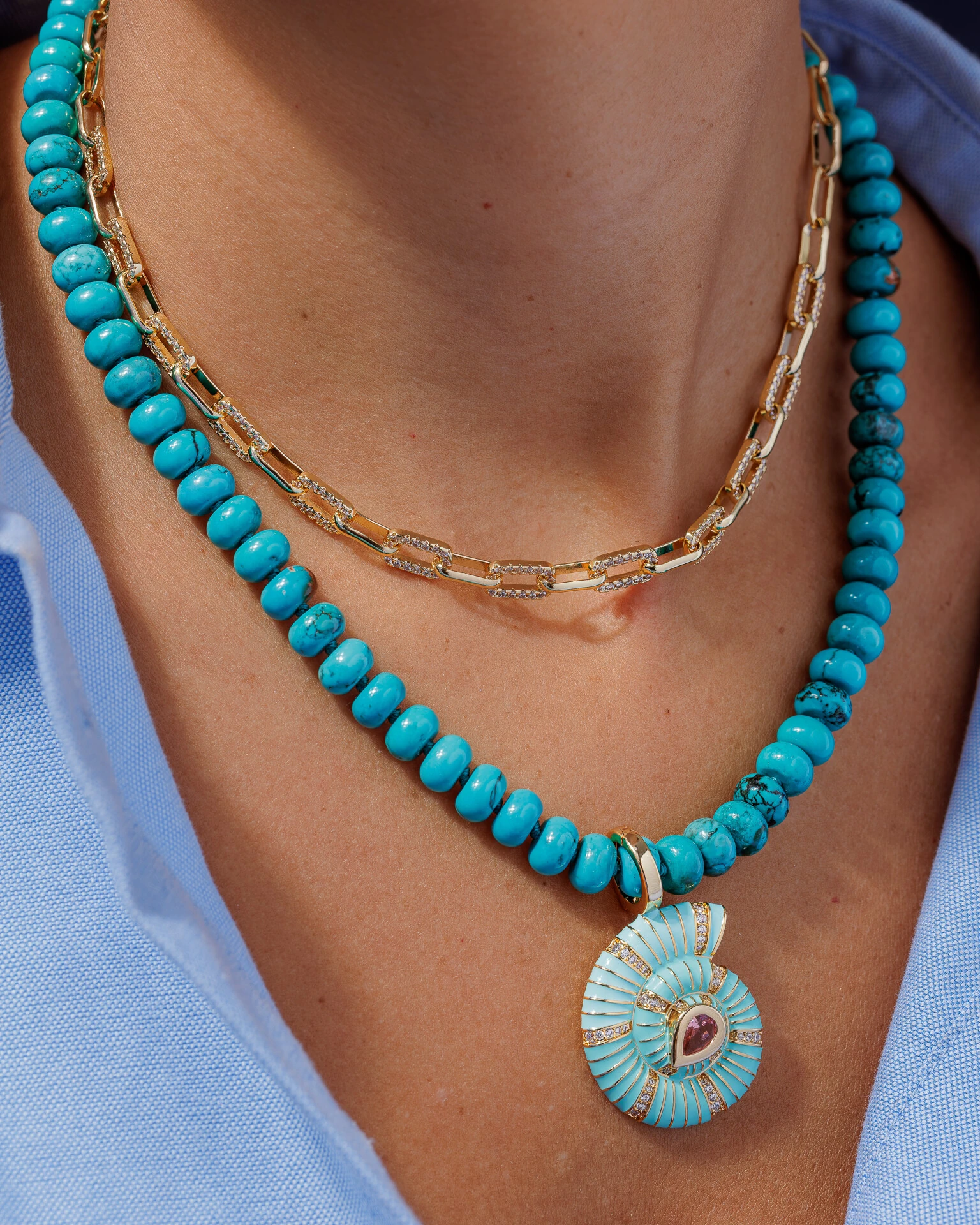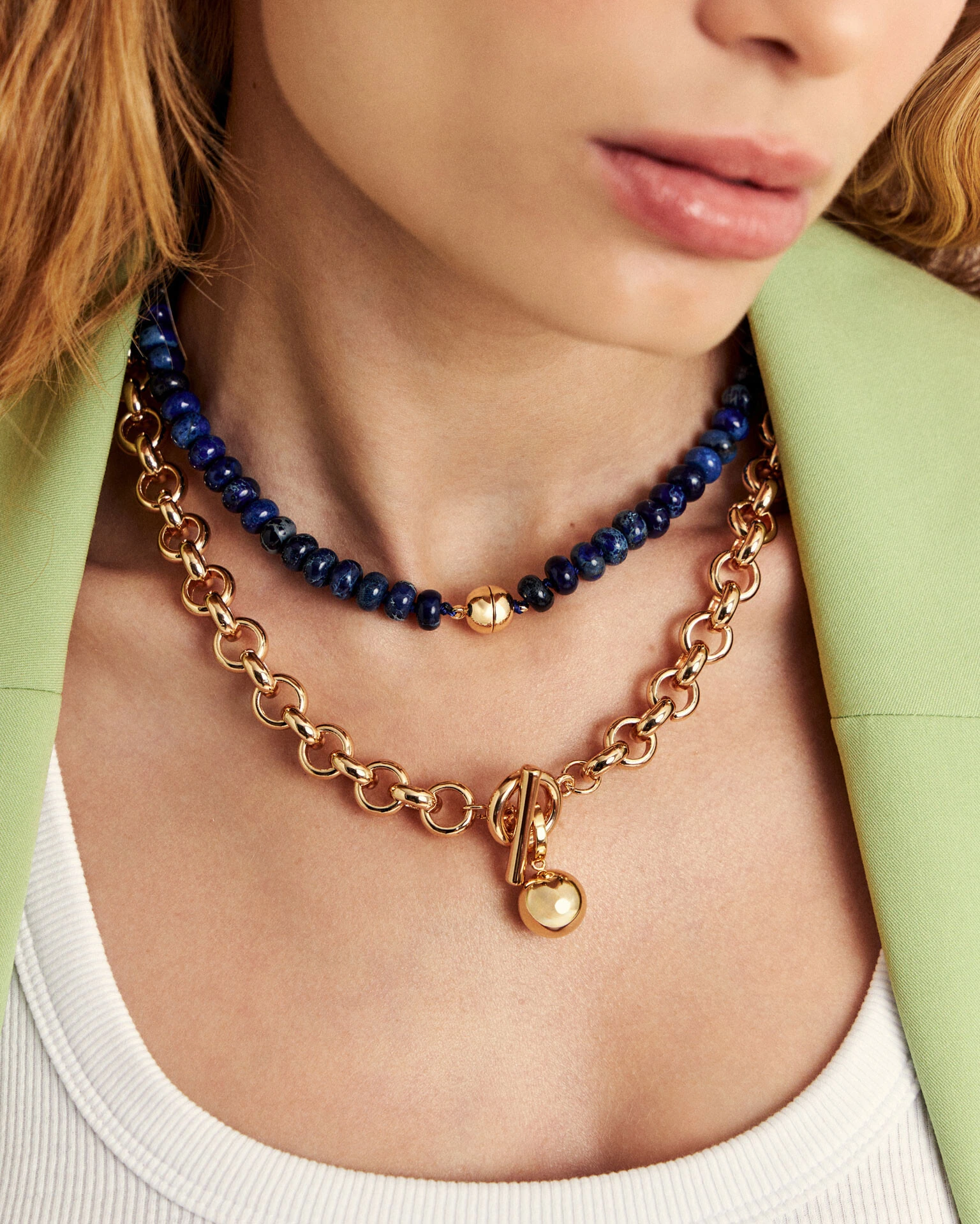 O Colar Bali reune a sofisticação das contas lapidadas em pedras naturais e a energia vibrante de suas tonalidades, criando um look irreverente e atrativamente ousado. Seu elegante fecho Boia magnético, em banho de ouro 18k, pode ser usado na frente para valorizar a beleza deste acessório. Disponível em Turquesa, Safira e Malaquita.