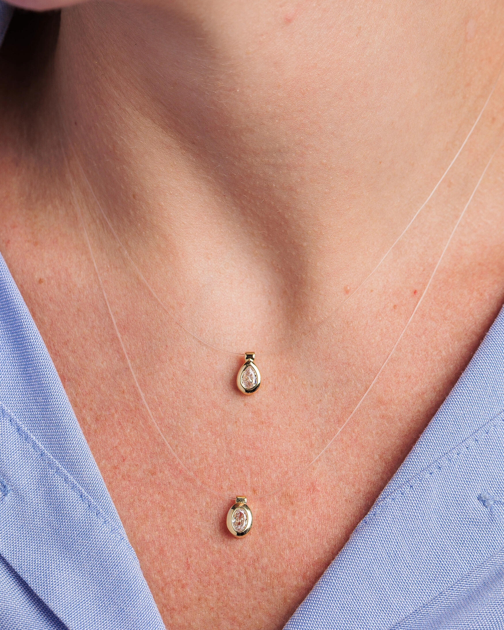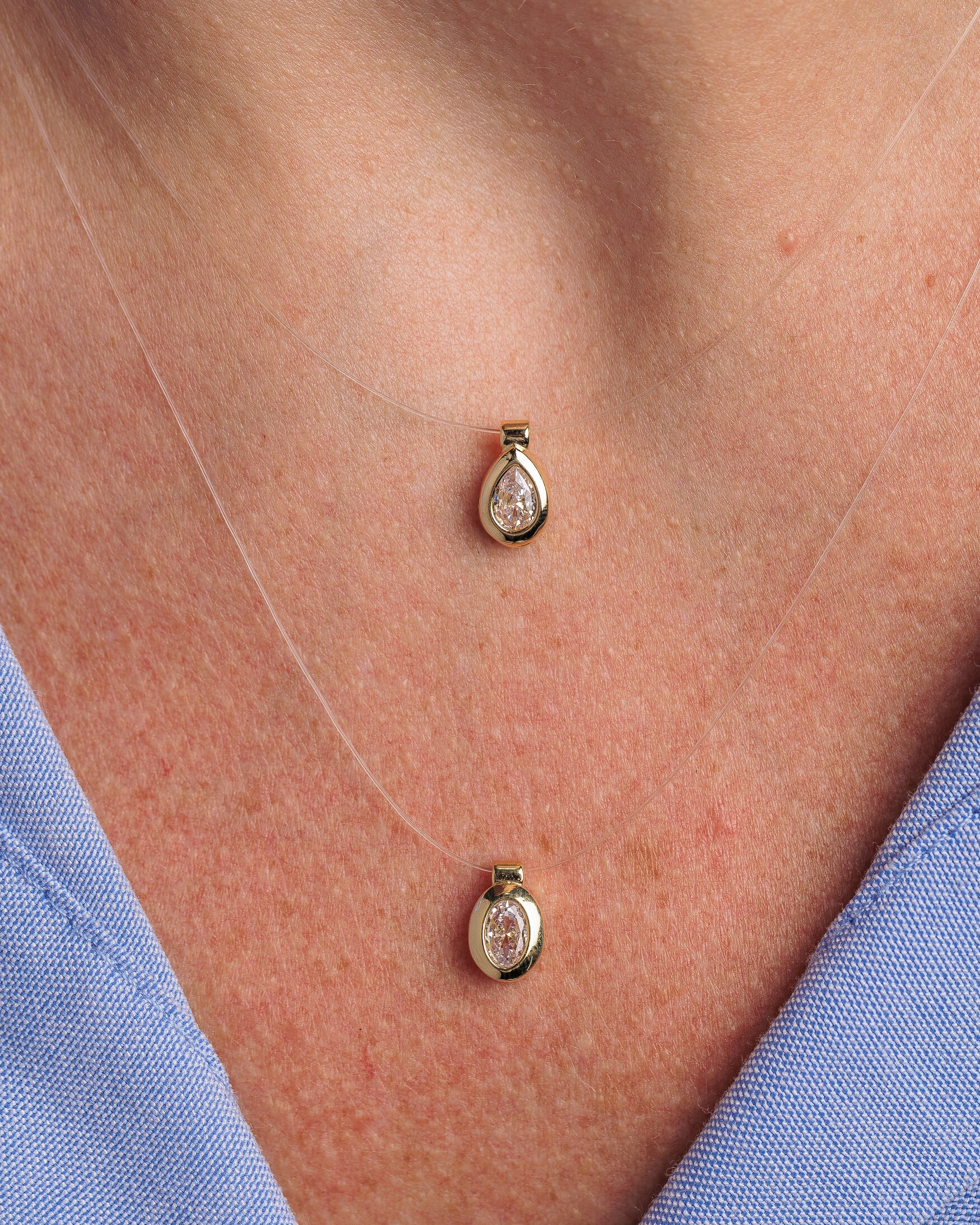 Colar minimalista com sutileza inigualável, onde o destaque é o pingente com cravação inglesa que valoriza a beleza da zircônia cristal em formato Oval. Também disponível no formato Gota (código 722323).