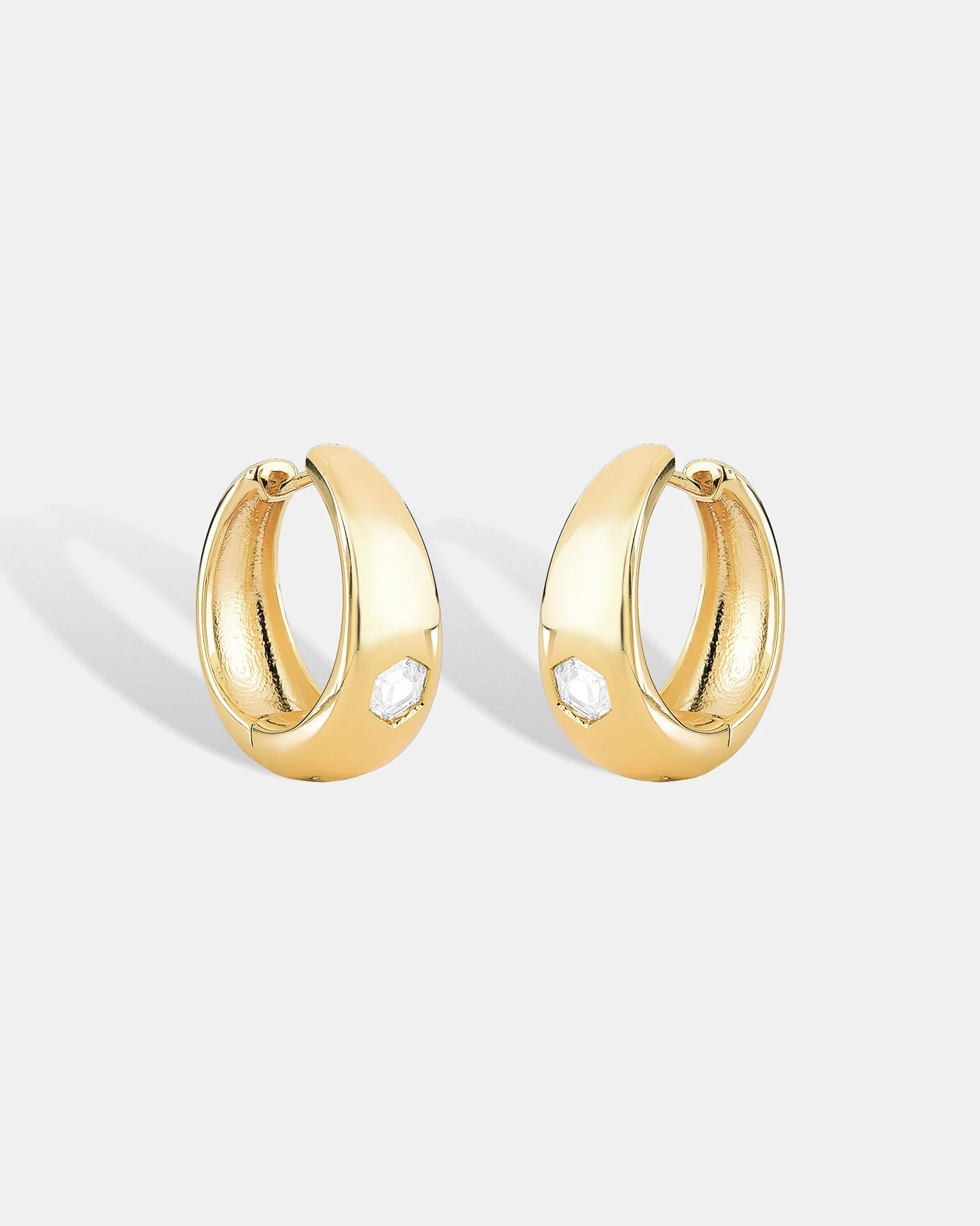 De linhas volumosas e abauladas, a Argola Gina, apresenta um detalhe hexagonal em zircônia cristal, conferindo um toque de brilho e muita elegância. É um modelo que encanta por sua praticidade e por combinar com qualquer estilo e ocasião. Disponível em banho de ouro 18k com fecho Click.
