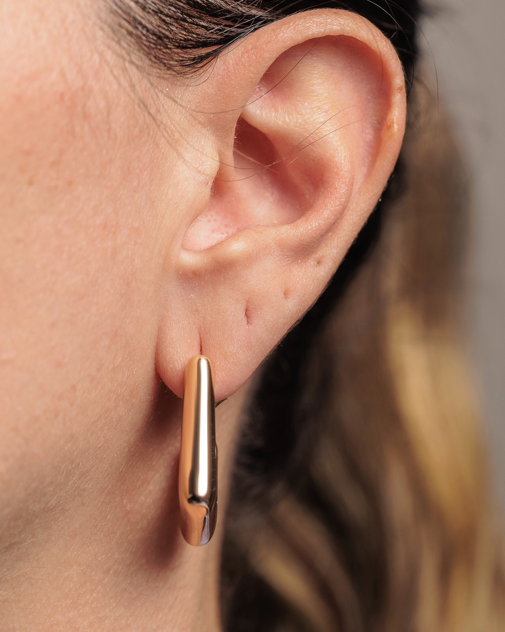 O que mais encanta neste modelo de argola é a elegância de suas linhas ligeiramente abauladas que transmitem leveza, garantindo praticidade e conforto durante seu uso, Perfeita para ser usada diariamente e em todas as ocasiões, já que combinam com diferentes estilos e looks. Disponível em banho de ouro 18k.