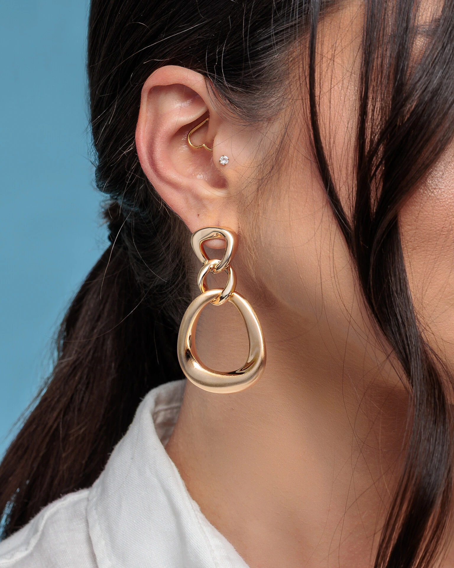 Brinco Elos Silvia, em banho de Ródio e Ouro 18k, o brinco formado por três elos orgânicos liso acetinados. Combinando volume, movimento e suavidade, criando uma peça marcante. É aquele tipo de brinco que transforma qualquer composição sem esforço.