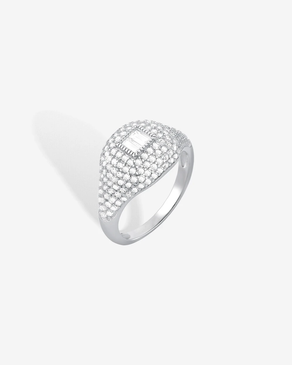 O apelo charmoso dos acessórios volumosos, se faz presente no Anel de mindinho cravejado Kylie. Em formato abaulado, com banho de Prata 925, ele traz charme e portencia aos looks.