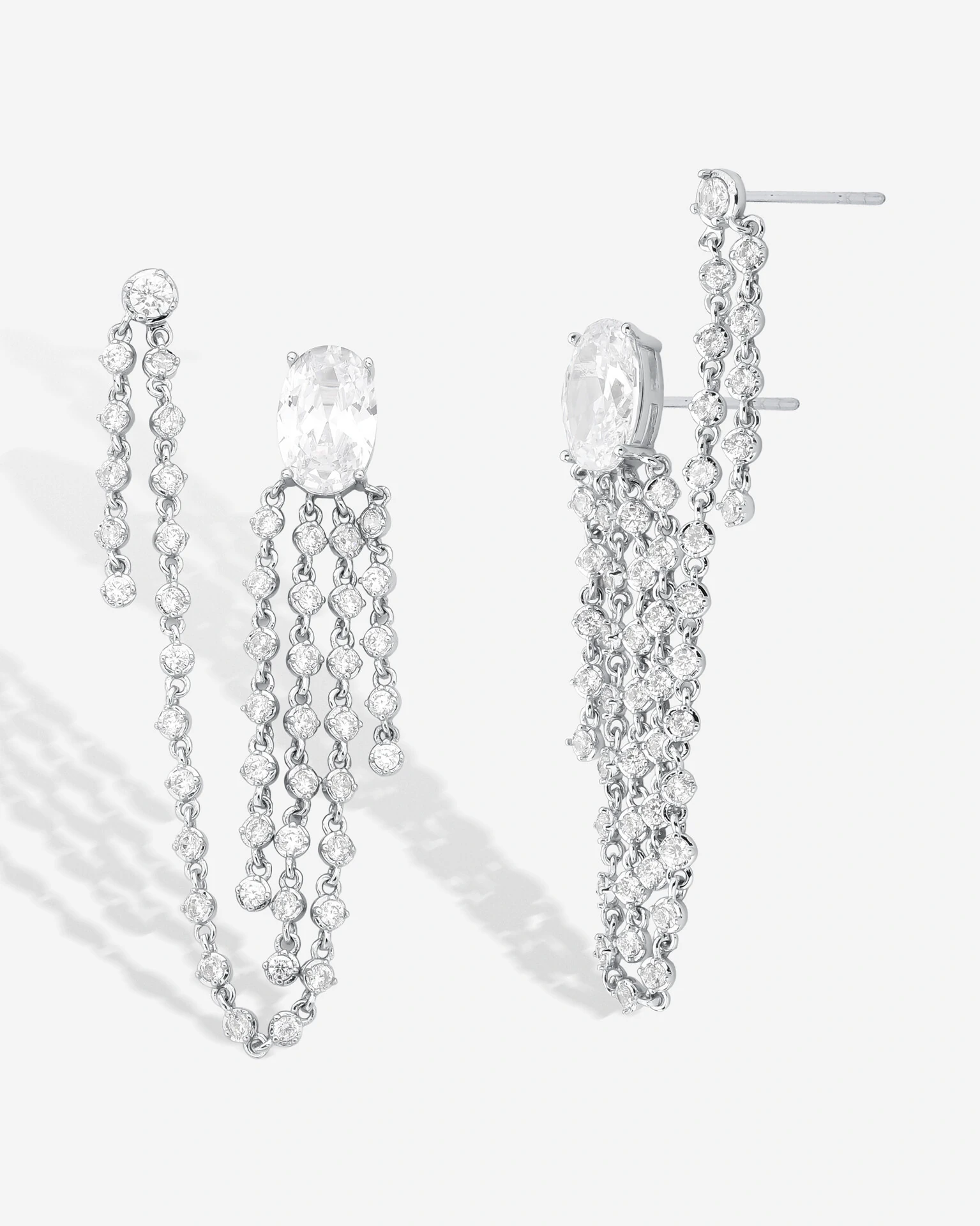 Brinco Ear Line em banho de ródio, com cravação de zircônias em lapidação oval cristal.