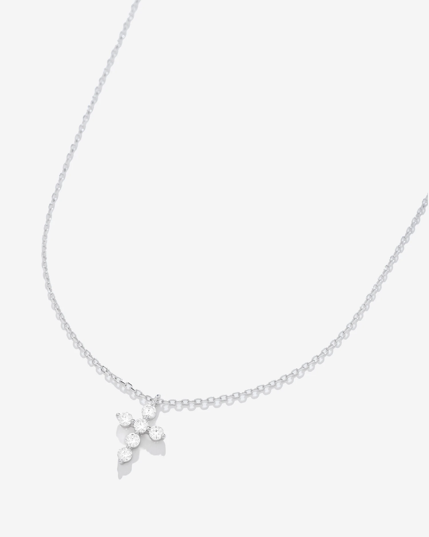 Os reflexos maravilhosos e únicos da Moissanite, complementam com elegância o Colar Cruz. O modelo apresenta um belíssima composição de pontos de luz que formam o Crucifixo em Moissanites de 2,5mm. Uma verdadeira joia em Prata 925 com impecável acabamento em banho de Ródio Branco.