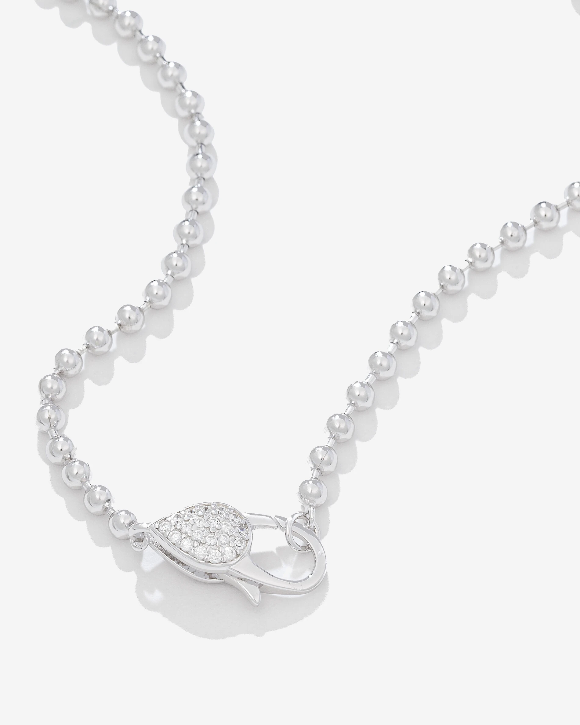 Uma combinação encantadora que une a corrente de bolinhas com o mosquetão em formato de Gota, toda recoberta pelo brilho intenso de zircônias cristais, um detalhe elegante que irá proporcionar um toque de refinamento ao seu look. Joia em prata 925 com banho de ródio branco.
