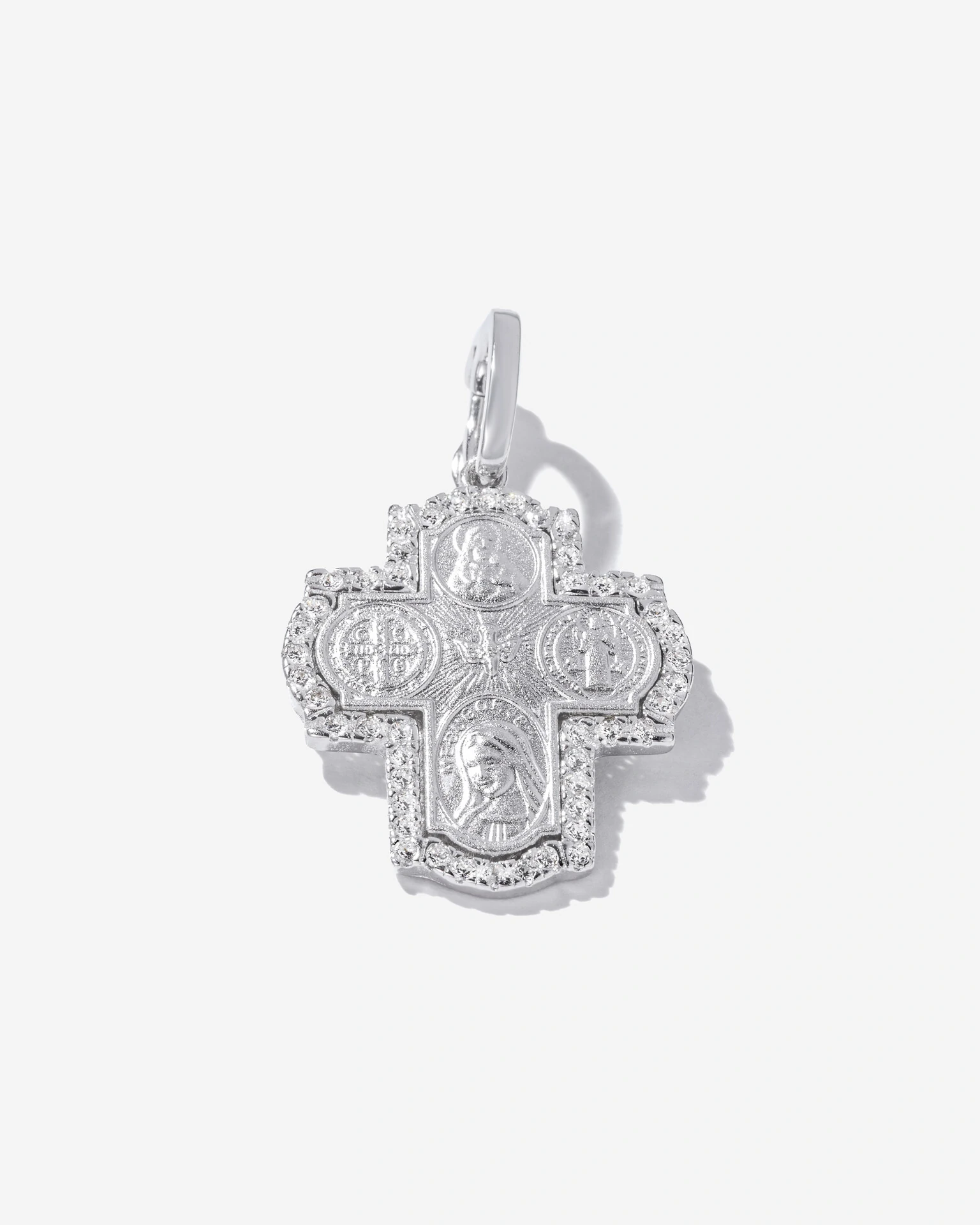 Maravilhosa maneira de expressar sua fé, o Pingente de Cruz em prata 925 e banho de ródio branco, com moldura em zircônias cristais. Uma joia maravilhosa e cheia de simbolismos, que irá acompanhar você em todos os momentos do seu dia a dia.
