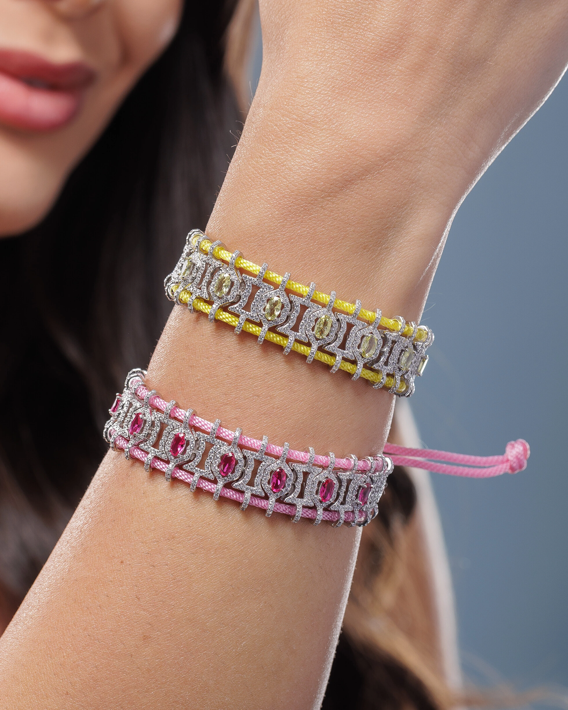 A Pulseira Fio Enseirado Diamond em Prata 925, traz elegância com personalidade. Em tom vibrante com zirconias ovais cravejadas, cria um brilho marcante e moderno. Ajustável e leve, é a peça perfeita para complementar o look com estilo e exclusividade. Disponível em Pink e Yellow Fancy.