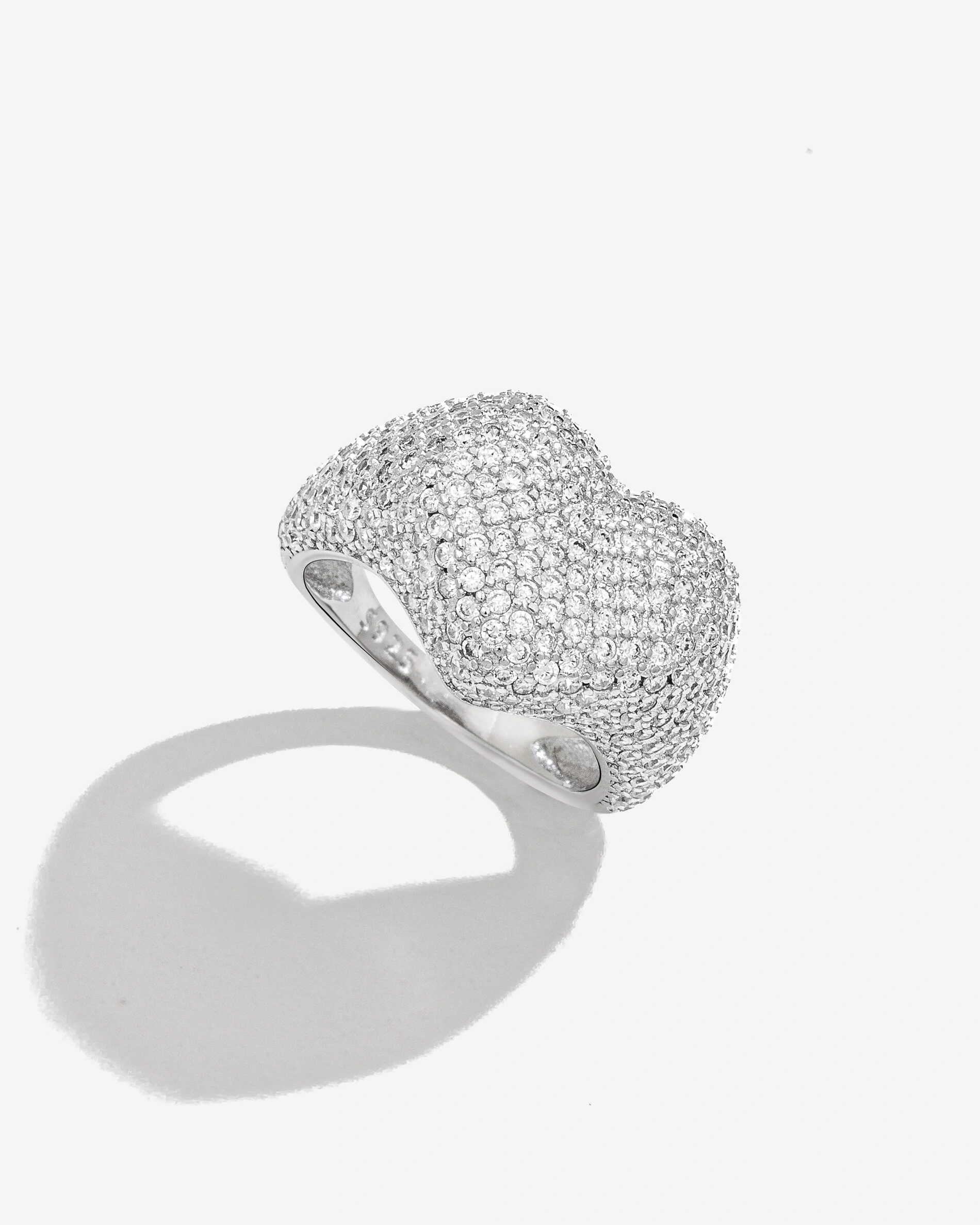 O apelo charmoso dos acessórios volumosos, se faz presente no Anel mindinho Khloe, uma joia em prata 925 e ródio branco, seu formato de coração abaulado em Pavê de micro zircônias cristais traz elegância e irá potencializar seus looks
