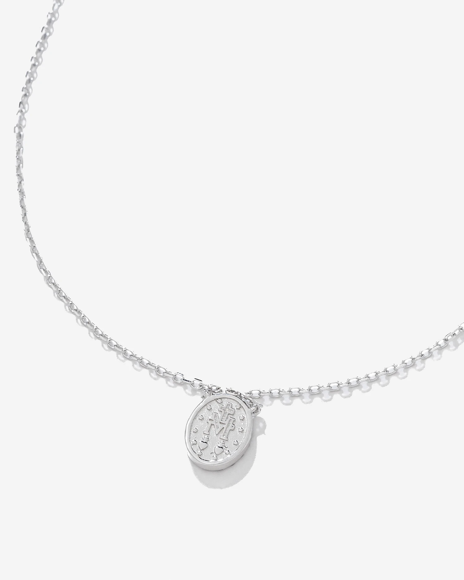 Maravilhosa demonstração de fé, através desta maravilhosa joia em prata 925 e banho de ródio branco, com o adorado medalhão de Nossa senhora das Graças, com moldura em Moissanites que recobrem de brilho e refinamento toda a imagem da santa.