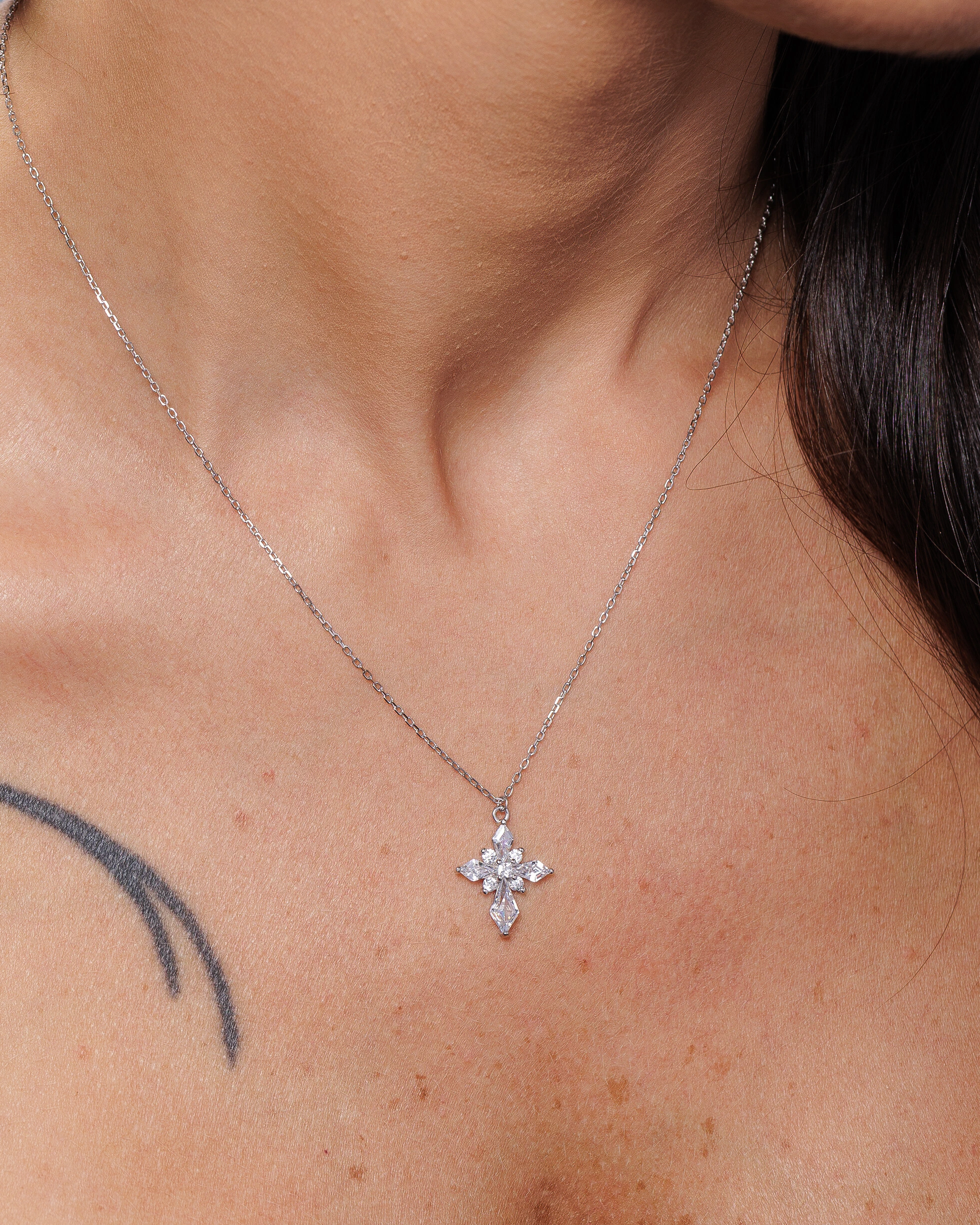 Colar Cruz Louise, com design delicado, confeccionado em Prata 925, com pingente em formato de cruz. Uma peça delicada e sofisticada, perfeita para complementar seu estilo com charme e brilho.