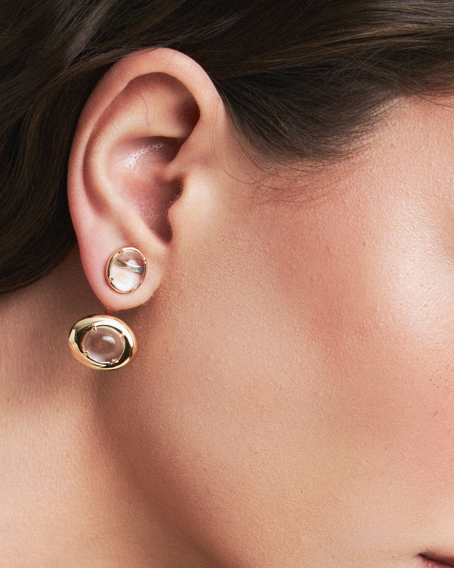Elegante design que busca maximizar a beleza de zircônias cristais na refinada lapidação Cabochão, através das linhas harmoniosas do Brinco Ear Jacket Alina, o modelo ideal para seus looks e composições. Disponível em banho de ouro 18k. Use-o com outros Acessórios da linha Alina.