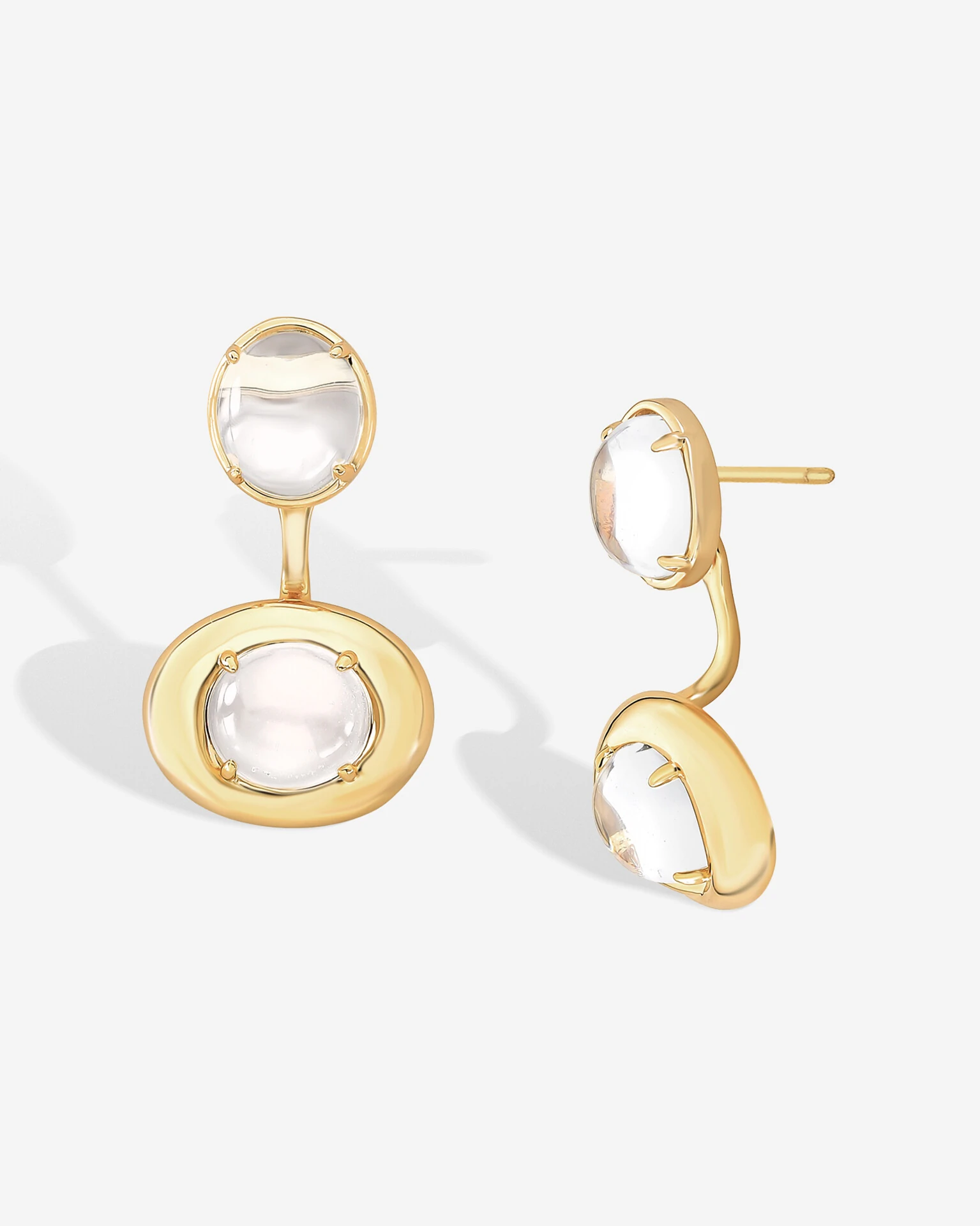 Elegante design que busca maximizar a beleza de zircônias cristais na refinada lapidação Cabochão, através das linhas harmoniosas de suas molduras , tornando o Ear Jacket Alina o modelo ideal para suas composições. Disponível em banho de ouro 18k. Use-o com outros Acessórios da linha Alina.
