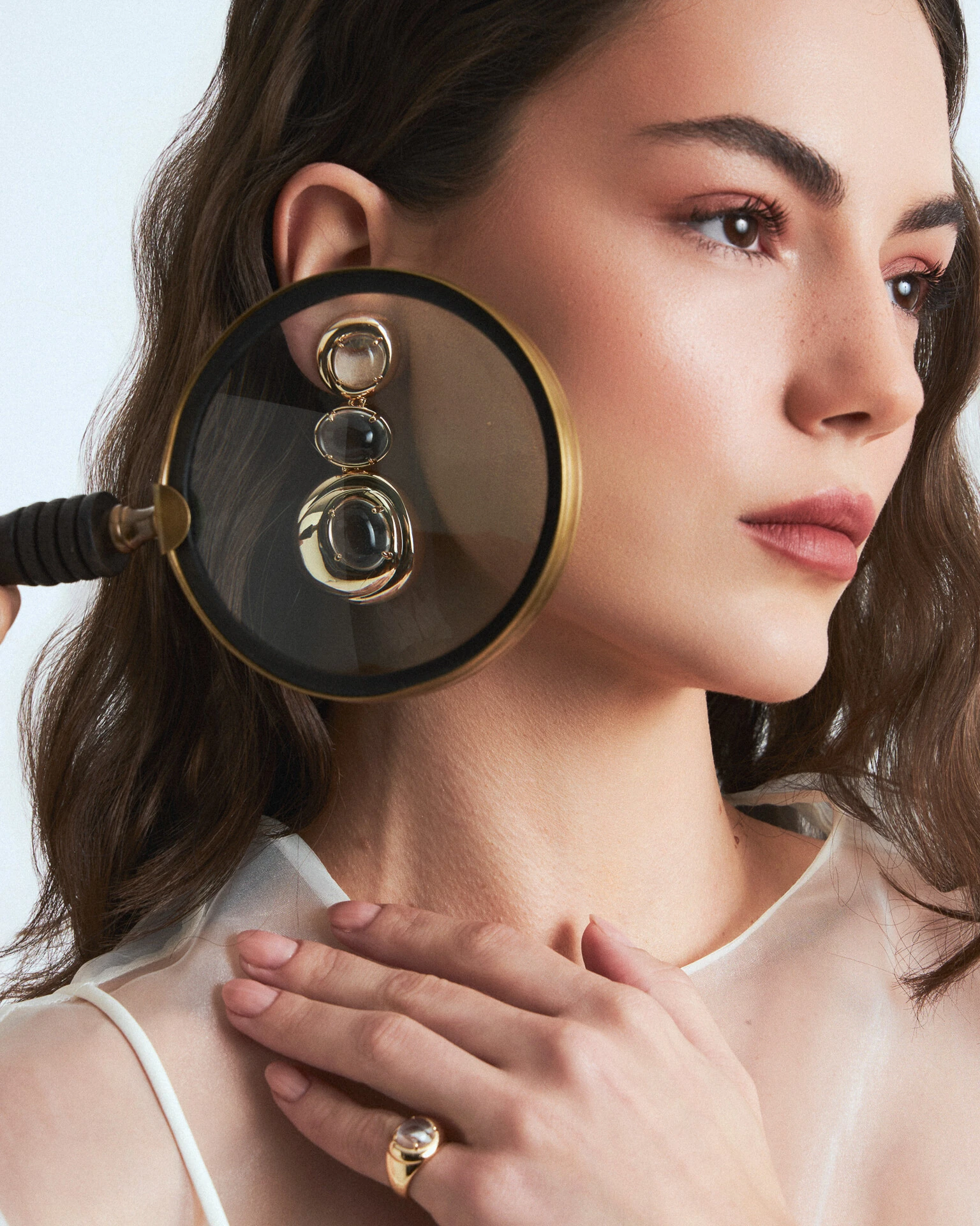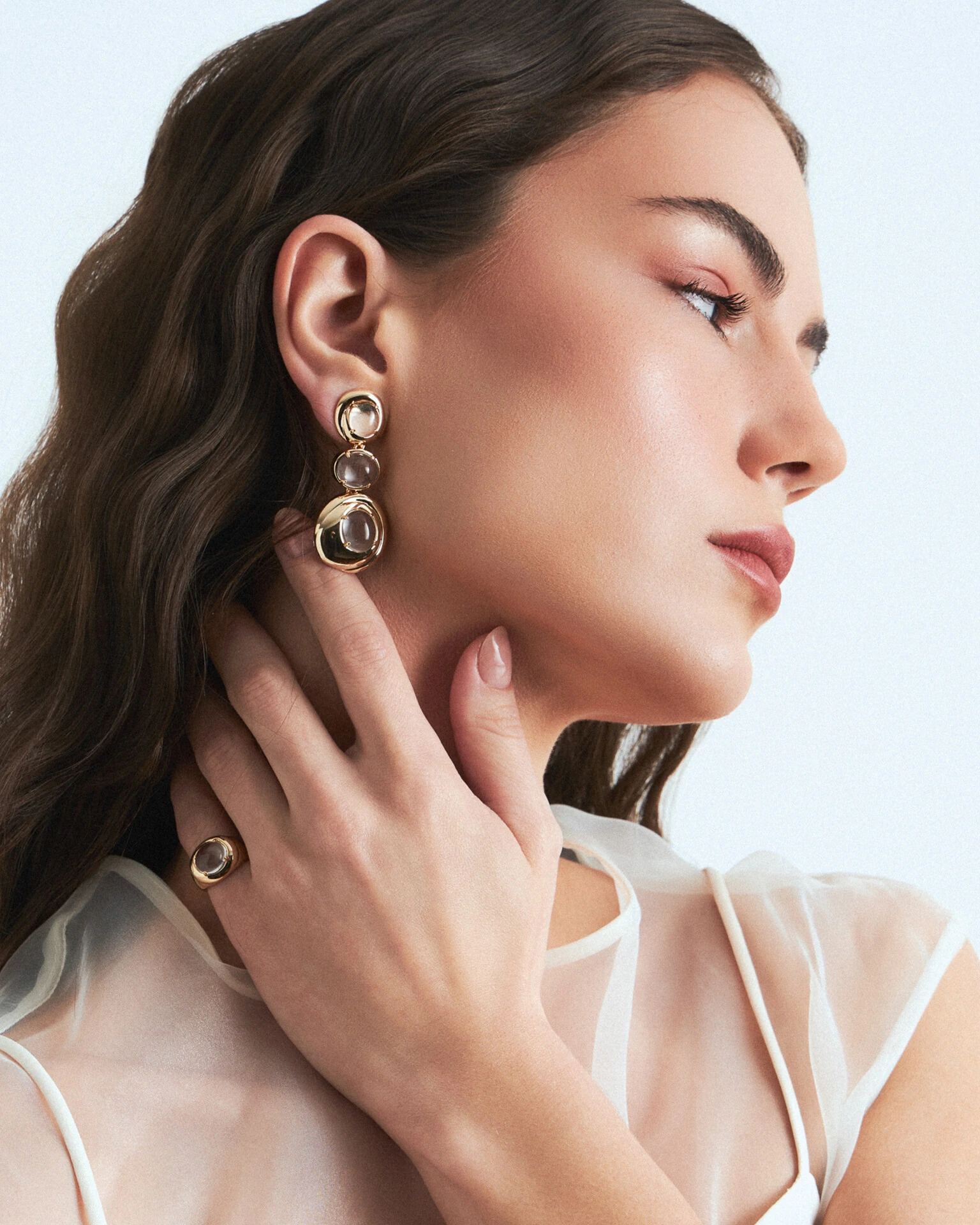 Elegante design que busca maximizar a beleza de zircônias cristais na refinada lapidação Cabochão, através das linhas harmoniosas do Brinco Alina, modelo ideal para seus looks e composições. Disponível em banho de ouro 18k. Use-o com outros Acessórios da linha Alina.