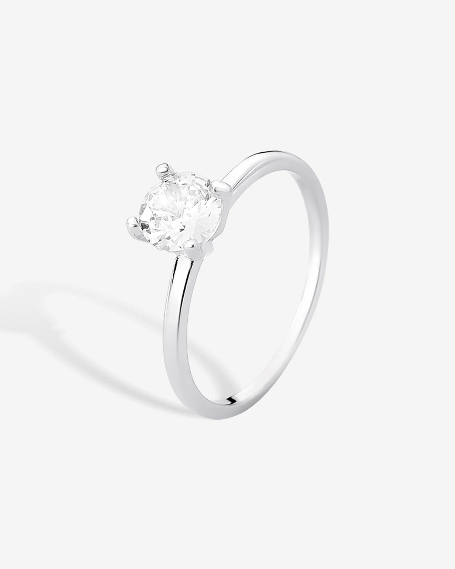 Anel Solitário Anne, uma joia em prata 925 com zirconia de tamanho 0,70cmx0,70cm . Uma peça sofisticada, delicada e atemporal.