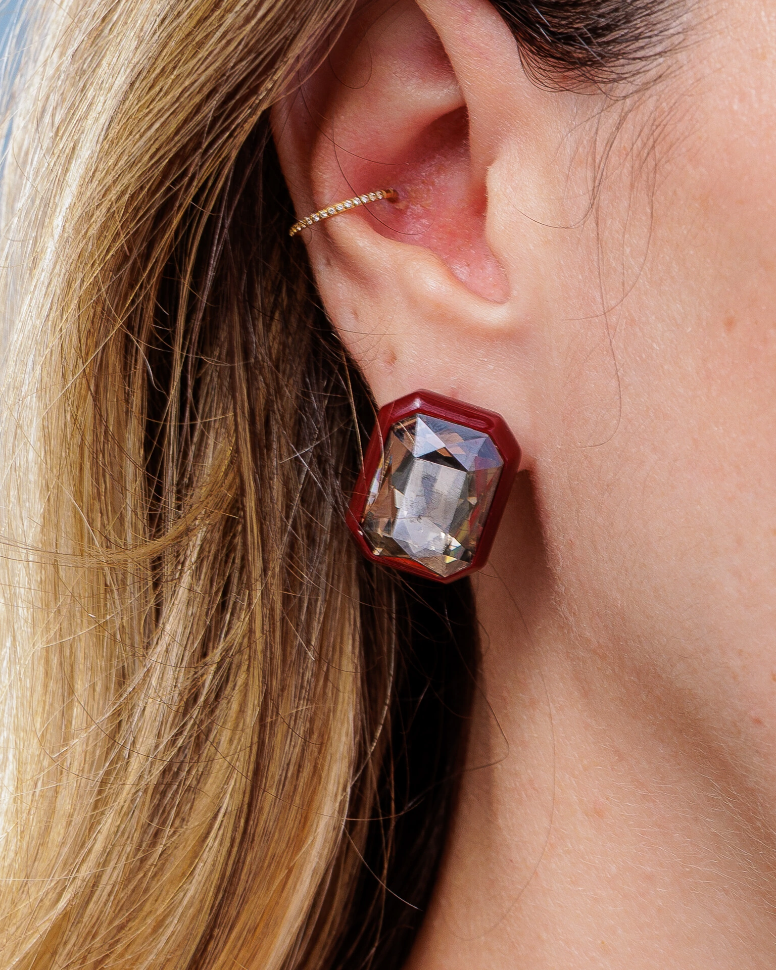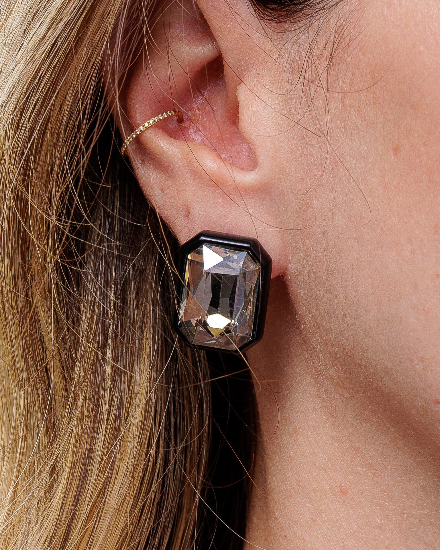 Ousado e super contemporâneo em seu design geométrico, o Brinco Mila une a leveza do acrílico com o brilho sofisticado da zircônia multifacetada. Uma opção acertada para ocasiões que pede Glamour com um toque de estilo. Disponível em banho de ouro 18k.
