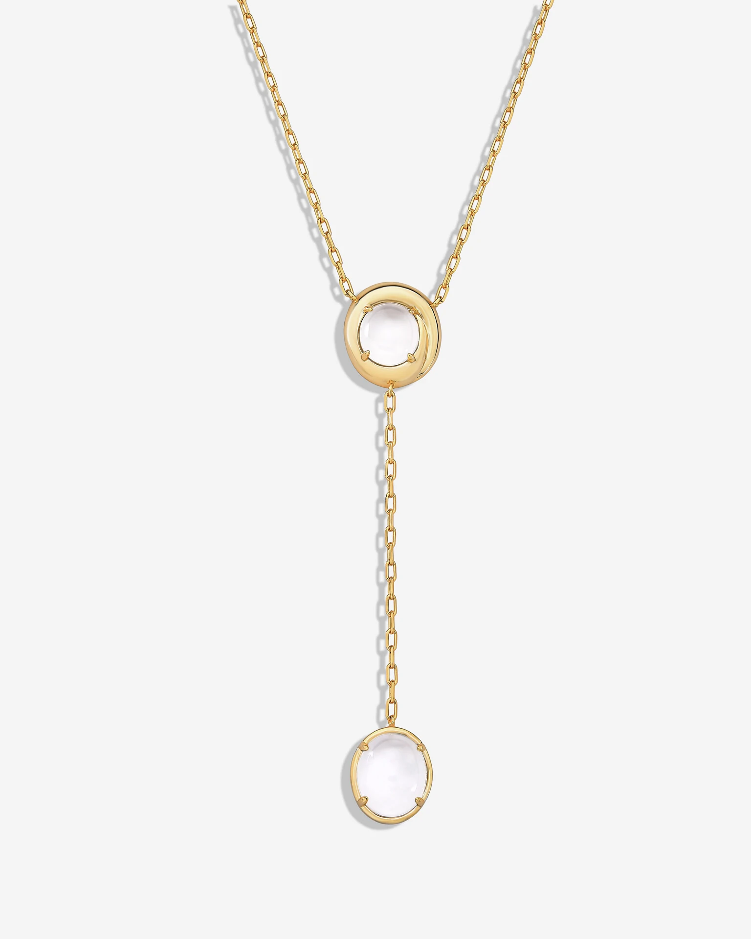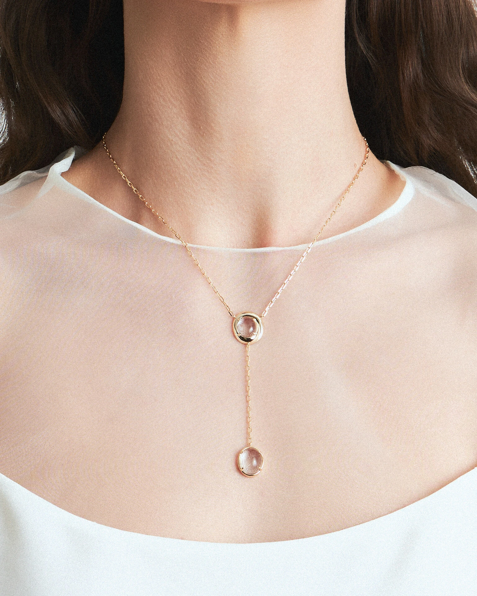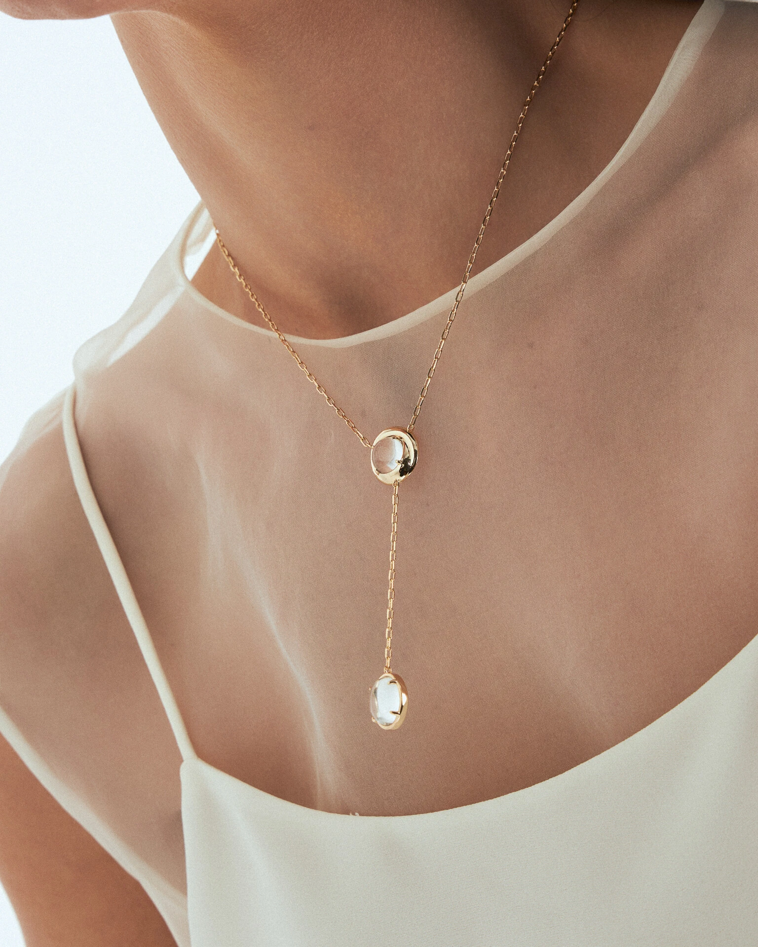 O Colar Gravata Alina em banho de Ouro18k é composto por duas pedras cabuchão. Delicado e minimalista, permite diversas combinações.