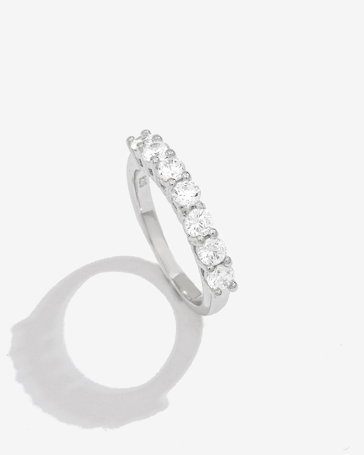 Anel Aparador Ester, em banho de Ródio, cravejado com Zirconias Cristais, trazendo brilho e delicade para a peça.