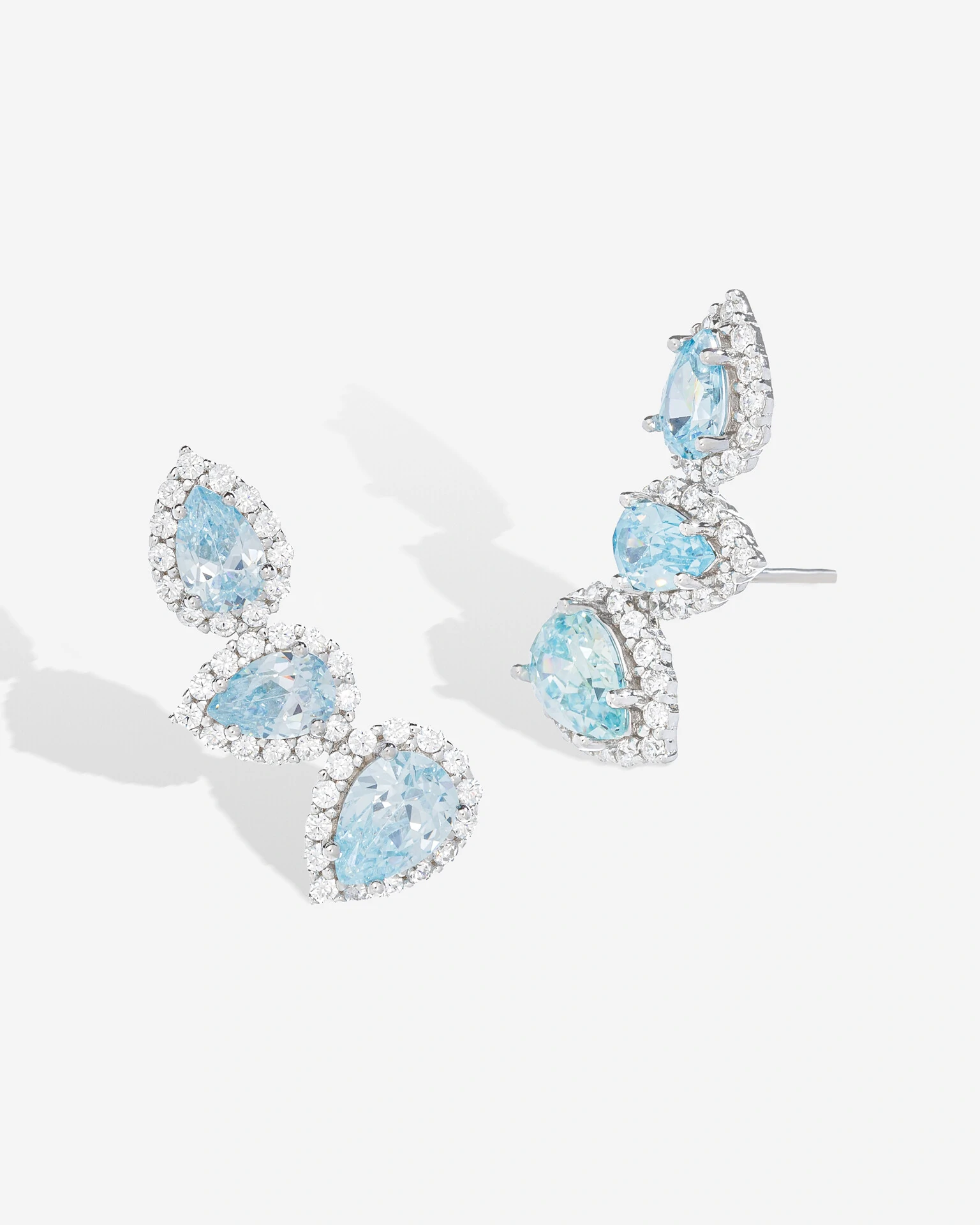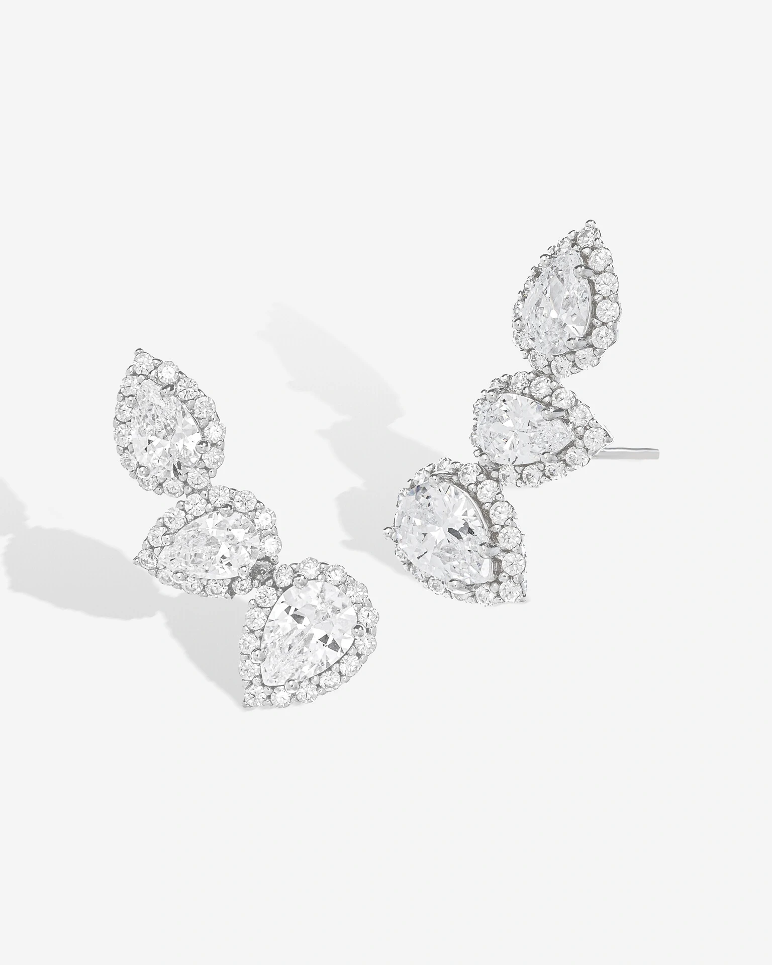 Brinco Ear Cuff com zircônias em formato gota, cravadas com microzircônias, que cria um efeito delicado e luminoso. Um modelo versátil, com brilho na medida certa para usar sozinho ou em composição.