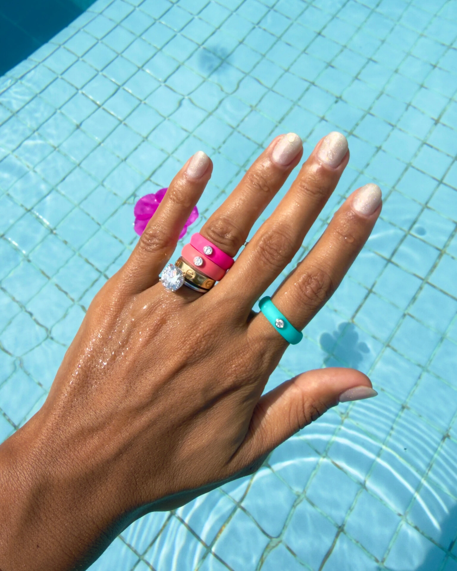 O Anel Ever é uma maravilhosa, confeccionado em silicone com diferentes tons, com a pedra central sendo moissanite 3mm.