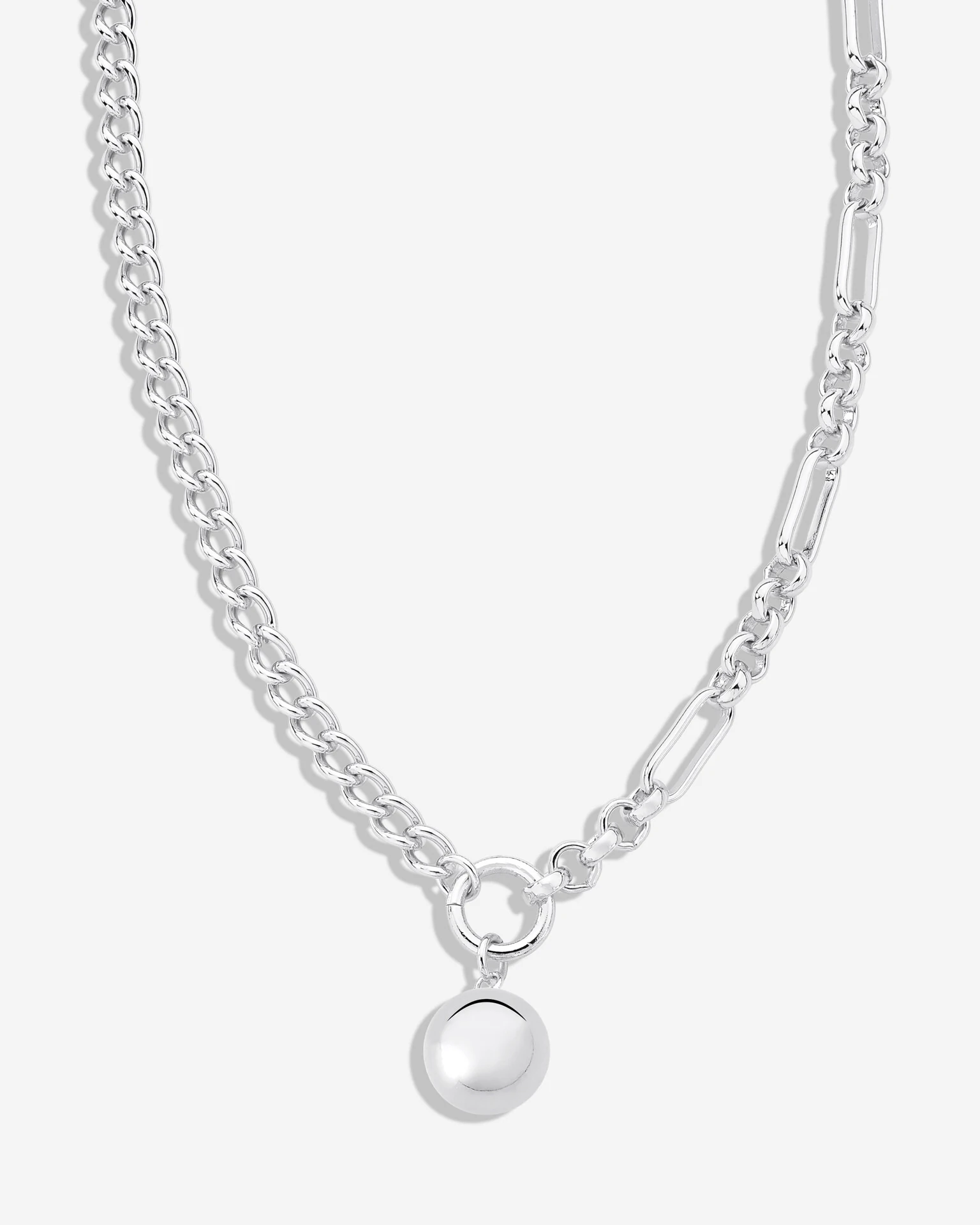 Colar ELo Lunis, com design moderno e elegante, o Colar Elo Lunis combina uma corrente de elos mistos com um pingente de esfera, que reflete a luz com sofisticação. Com o detalhe do elo frontal, criando um visual contemporâneo e cheio de estilo.