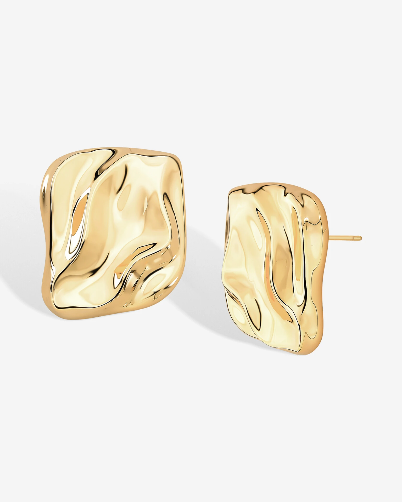 O design geométrico reinventado. A textura irregular e o acabamento polido deste brinco trazem personalidade imediata ao visual, unindo o minimalismo do formato quadrado com a ousadia das linhas orgânicas.