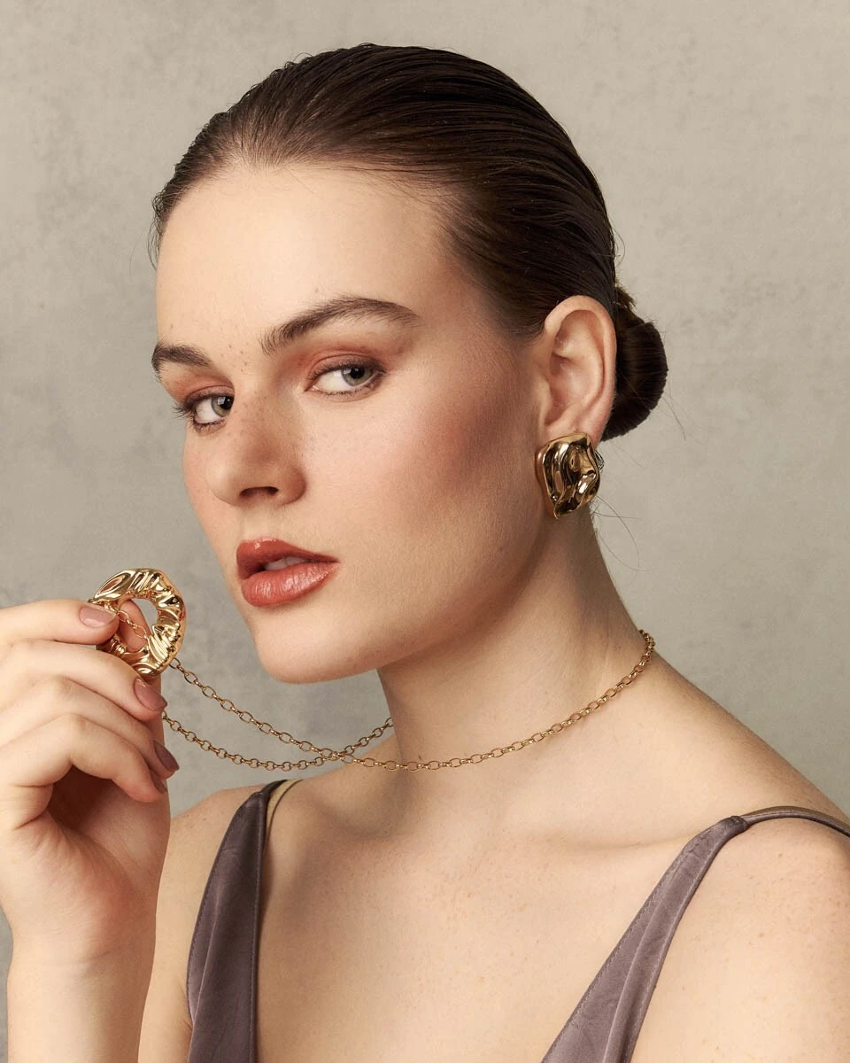 O design geométrico reinventado. A textura irregular e o acabamento polido deste brinco trazem personalidade imediata ao visual, unindo o minimalismo do formato quadrado com a ousadia das linhas orgânicas.