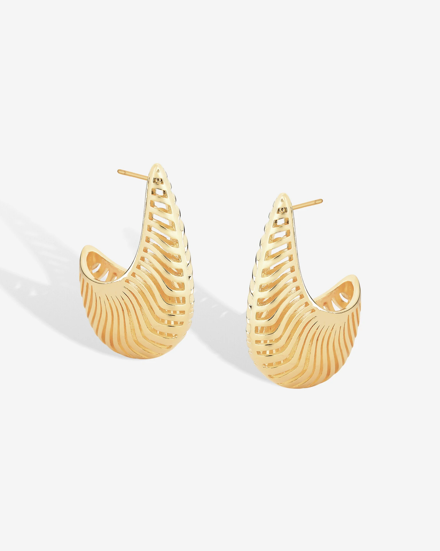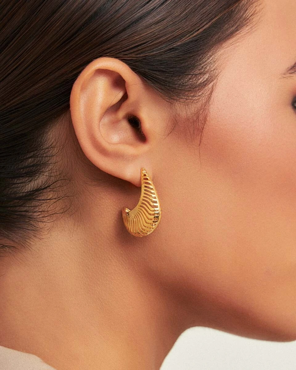 Argola Texturizada Trama, em banho de ouro 18k a argola apresenta um design vazado, trazendo um look mais casual e maximalista.