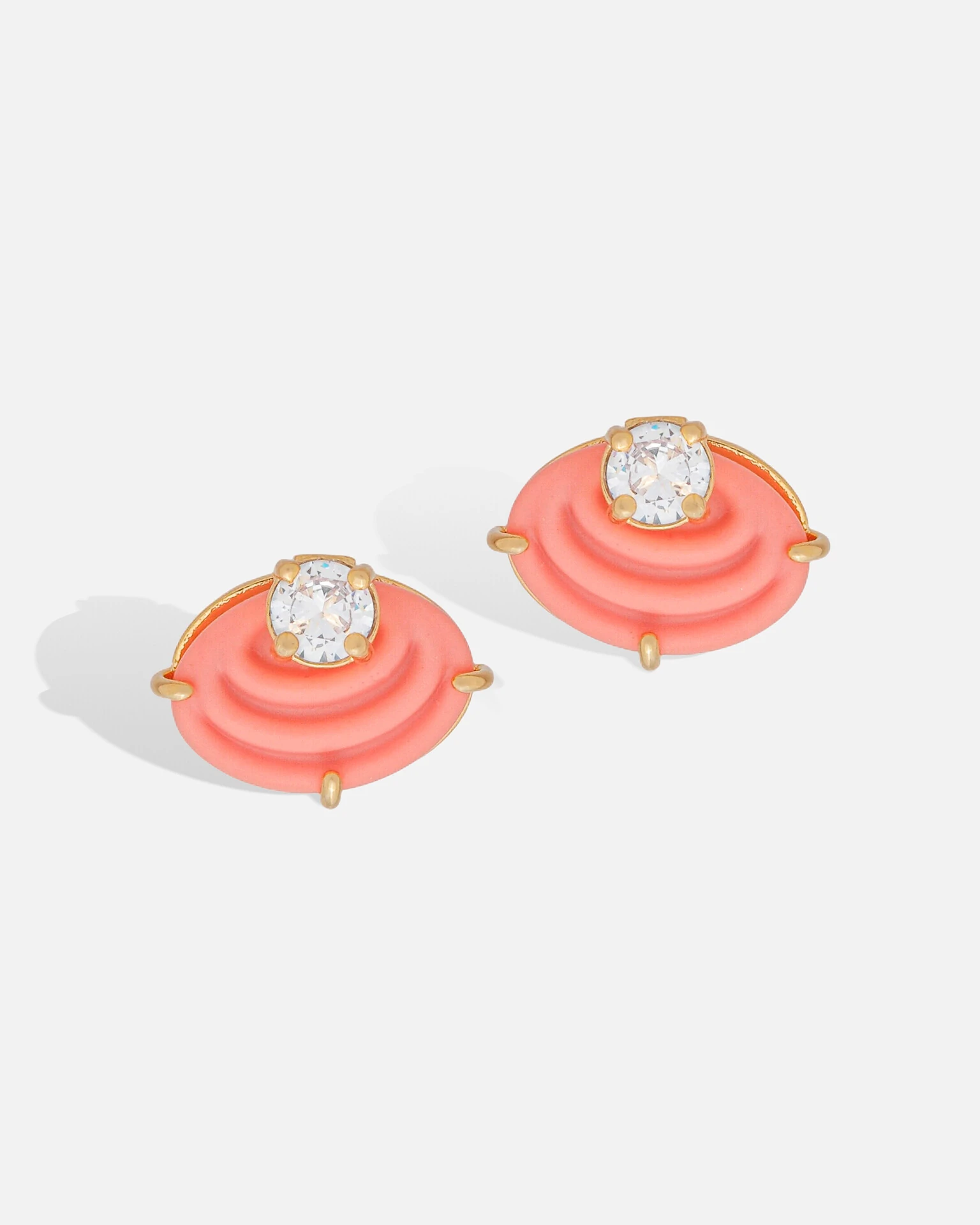 O Brinco Marés traz o design orgânico das ondas em peças com relevo texturizado e acabamento sofisticado. O contraste entre a resina colorida e o brilho do ponto de luz em cristal cria uma joia moderna, perfeita para quem busca elegância com um toque artístico