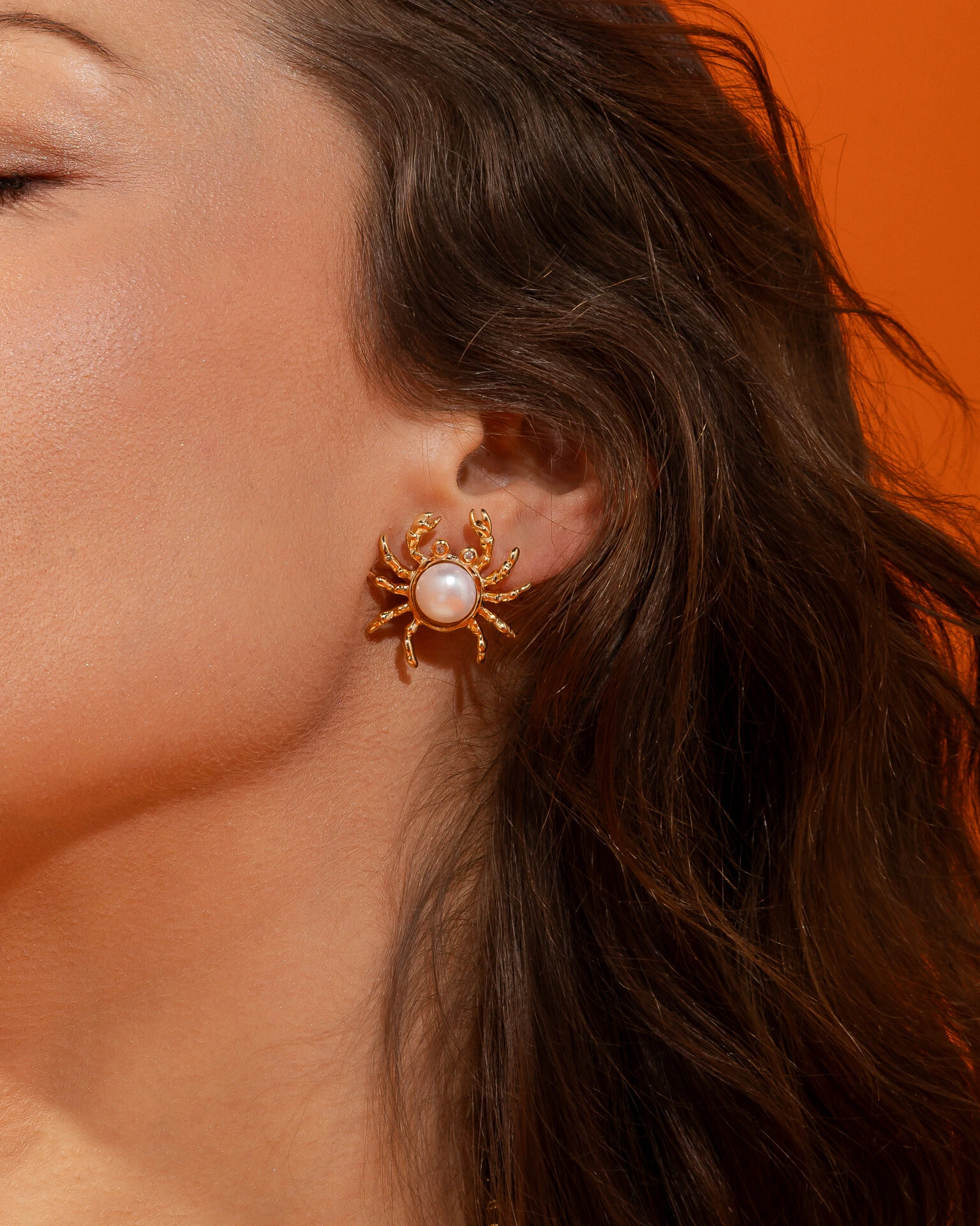 O design encantador de um pequeno siri de garras afiadas, apresenta em seu corpinho, uma bela pérola shell e olhinhos em mini zircônias cristais. O maravilhoso brilho do banho de ouro 18k se une ao conjunto para trazer um toque sutil de refinamento ao Brinco Siri Dourado.
